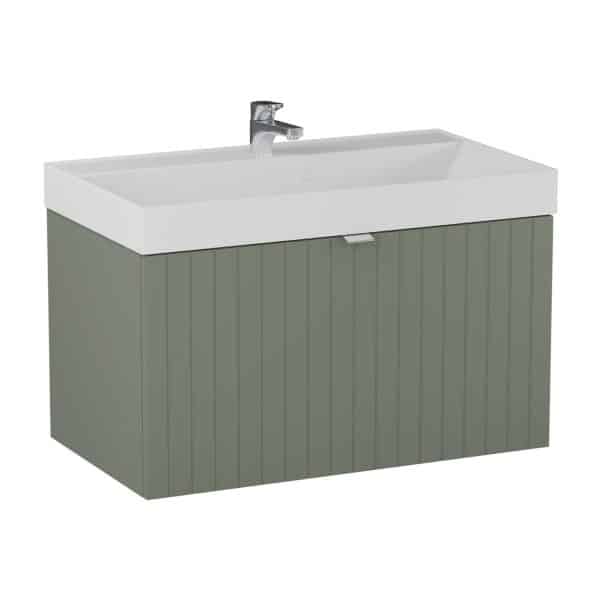 BADEDU ESLA Waschbecken mit Unterschrank 79 cm breit – Grün & Gussmarmor Weiß