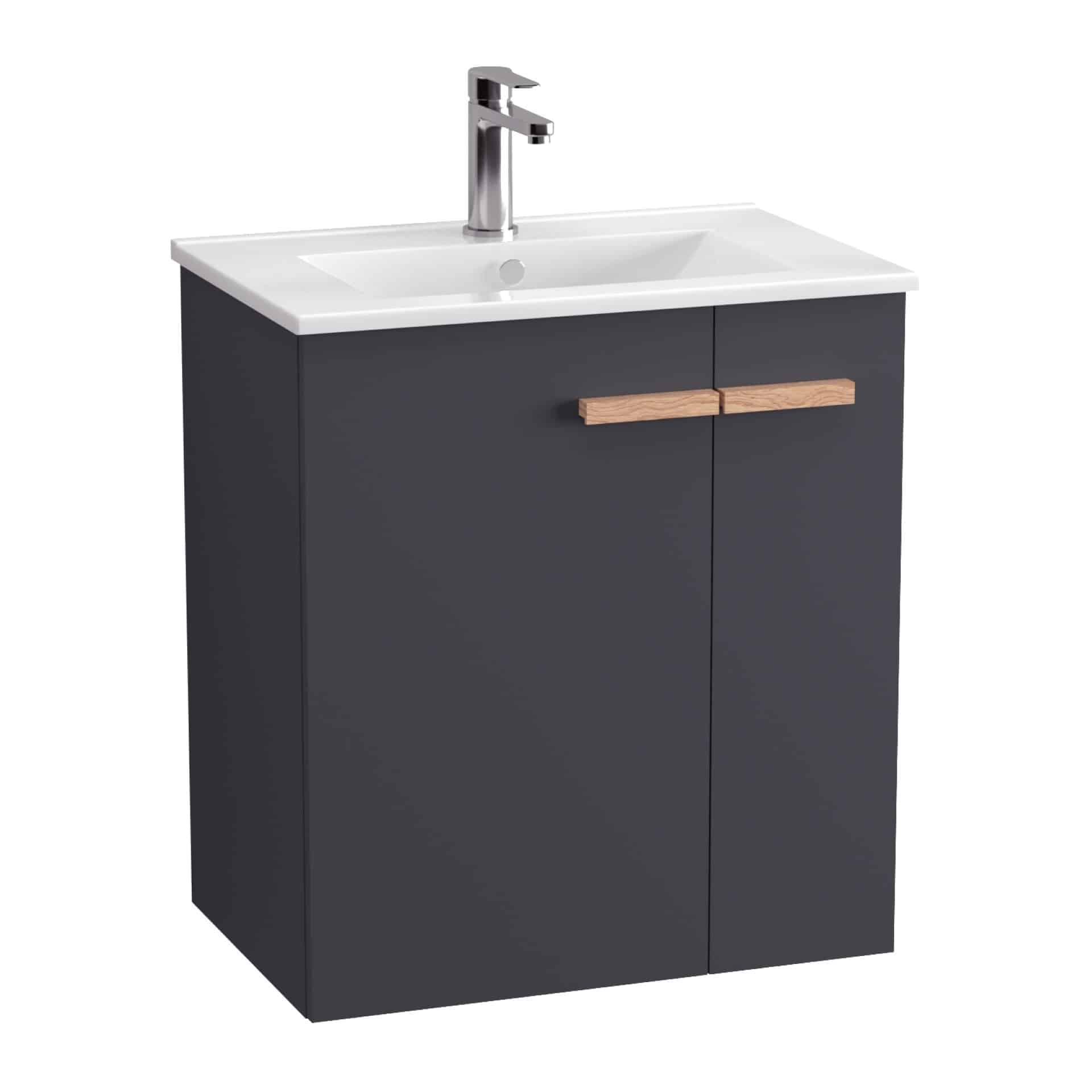 BADEDU HIERA Waschbecken mit Unterschrank 60 cm breit – Anthrazit & Keramik Weiß