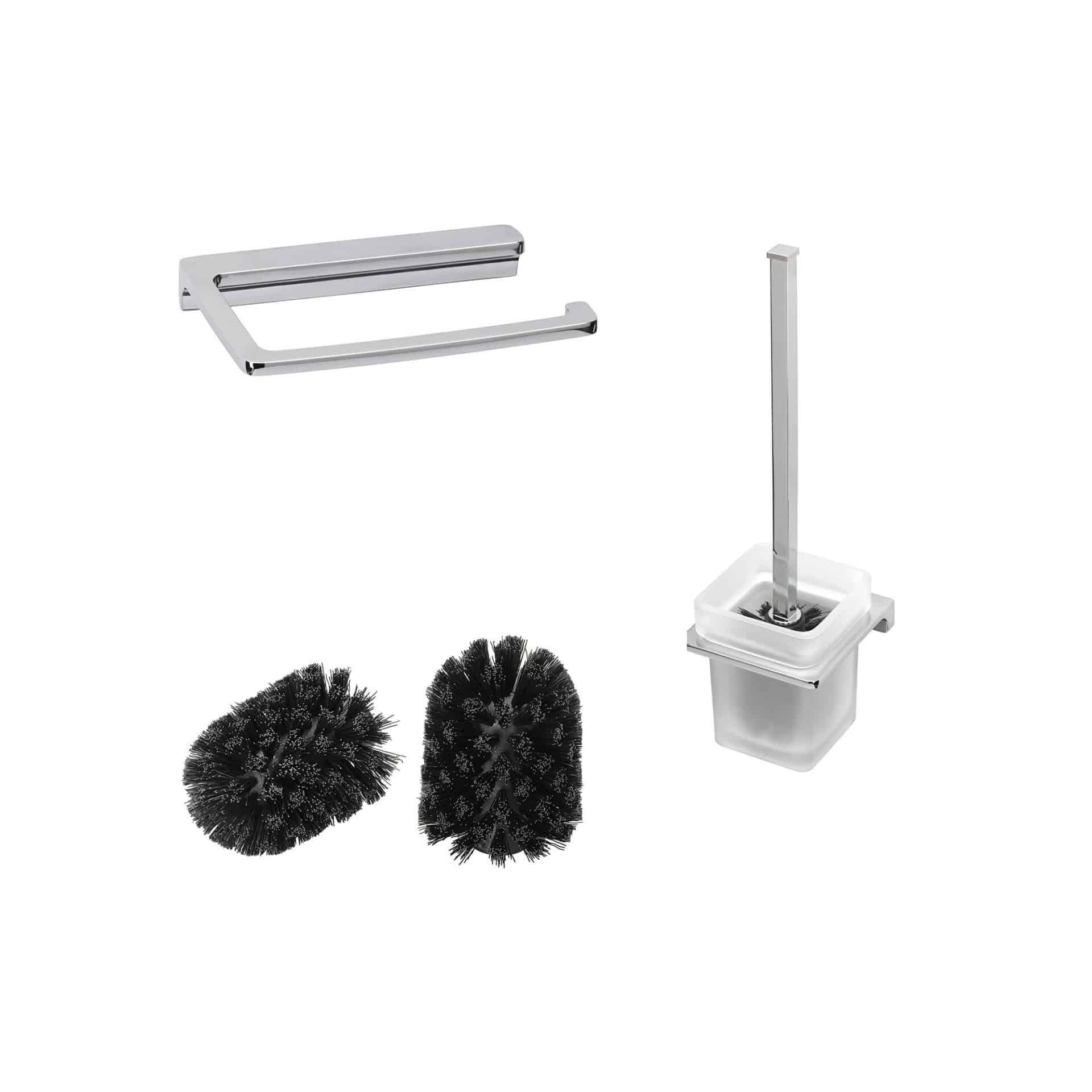 BADEDU SIRIUS Accessoire Set 3-teilig, Chrom, Toilettenpapierhalter, Toilettenbürste mit Halter, 2x Ersatzbürstenköpfe