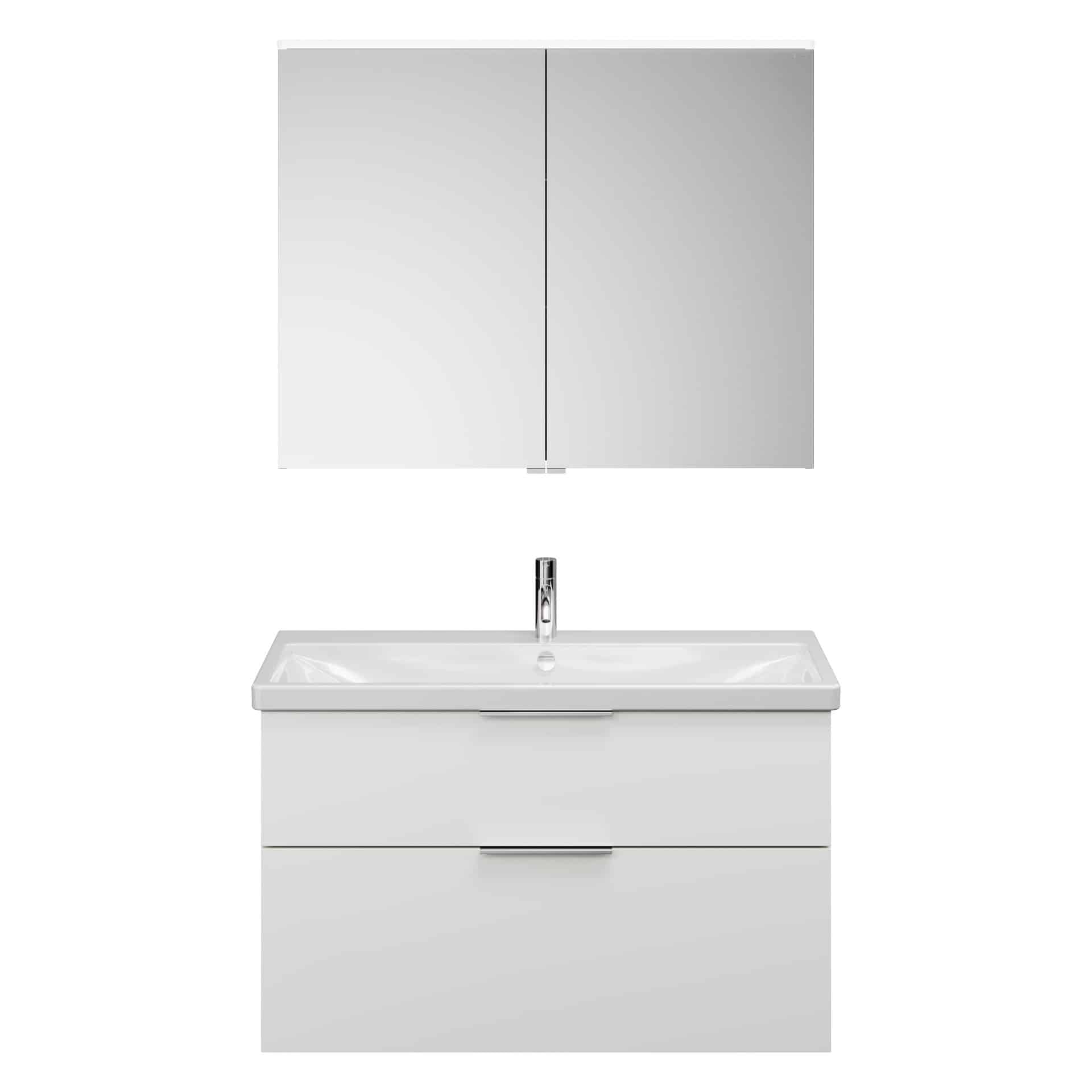 Burgbad EQIO Waschtisch Set mit Spiegelschrank 103 cm breit, Weiß Hochglanz, Waschbecken Keramik Weiß