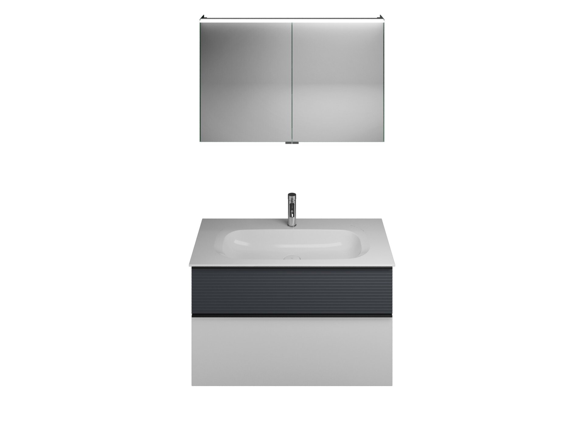 Burgbad FIUMO Waschtisch Set mit Spiegelschrank 102 cm breit, Weiß/Anthrazit, Waschbecken Gussmarmor Weiß
