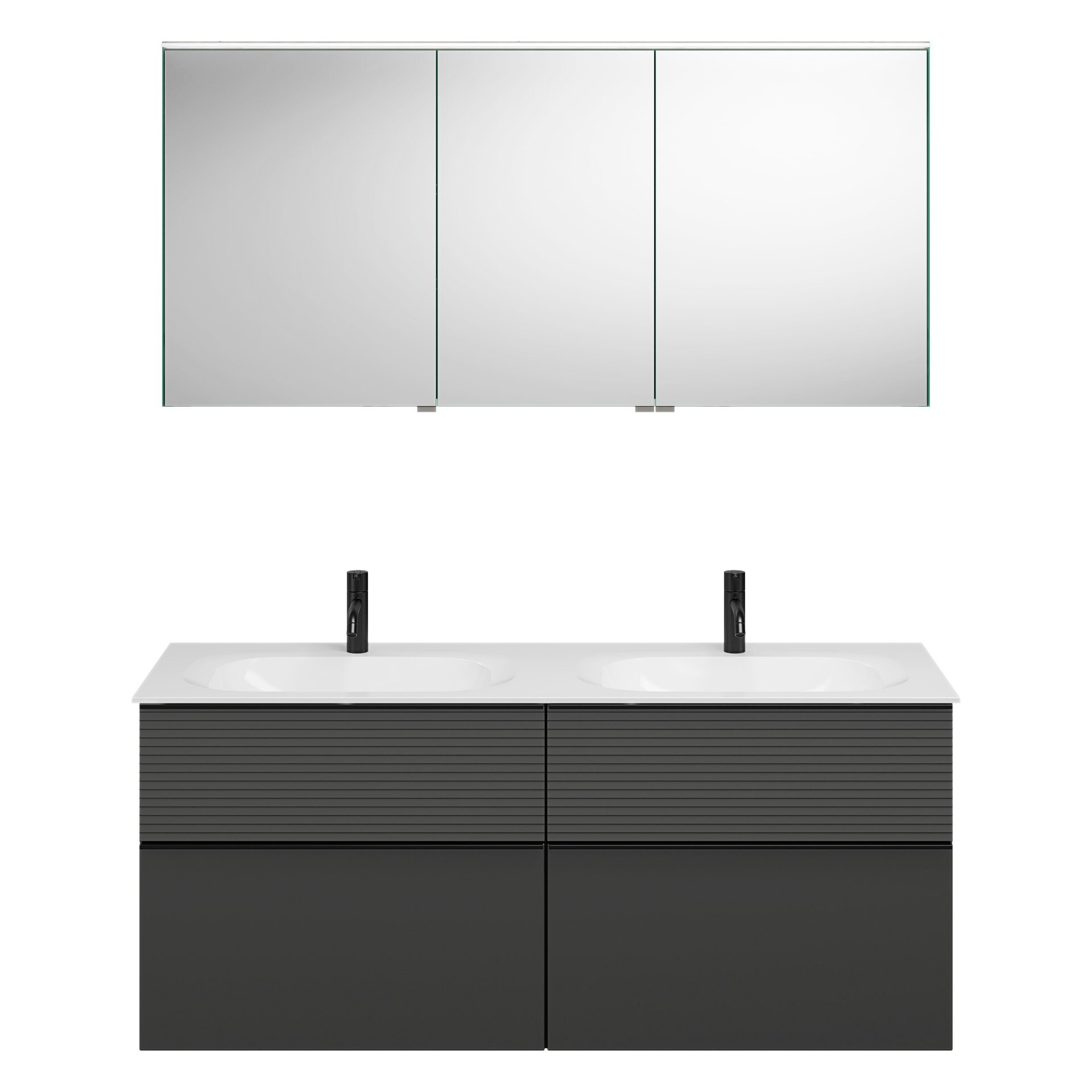 Produktbeschreibung: Burgbad FIUMO Waschtisch Set mit Spiegelschrank – 142 cm, Anthrazit
