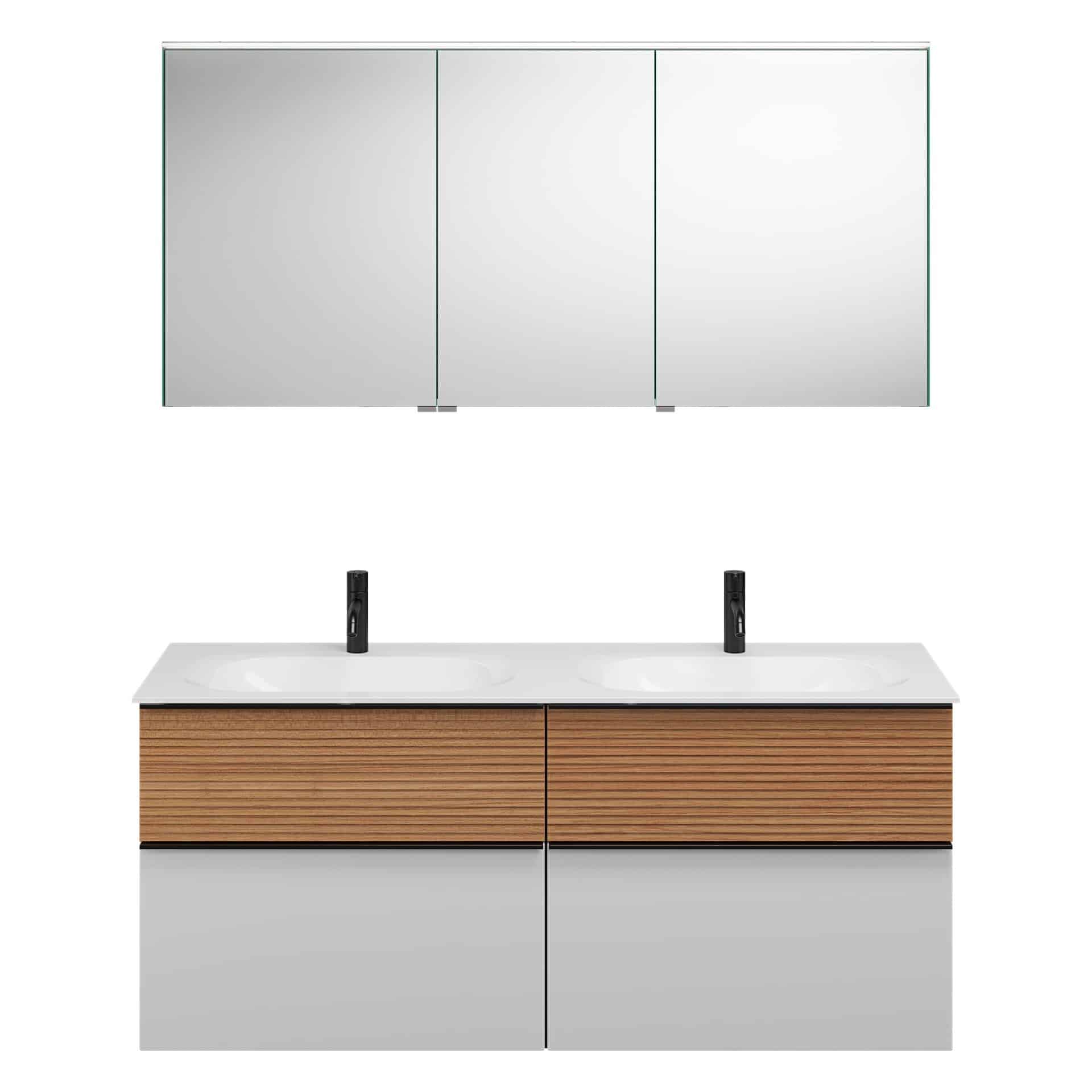 Burgbad FIUMO Waschtisch Set mit Spiegelschrank 142 cm – Braun/Weiß