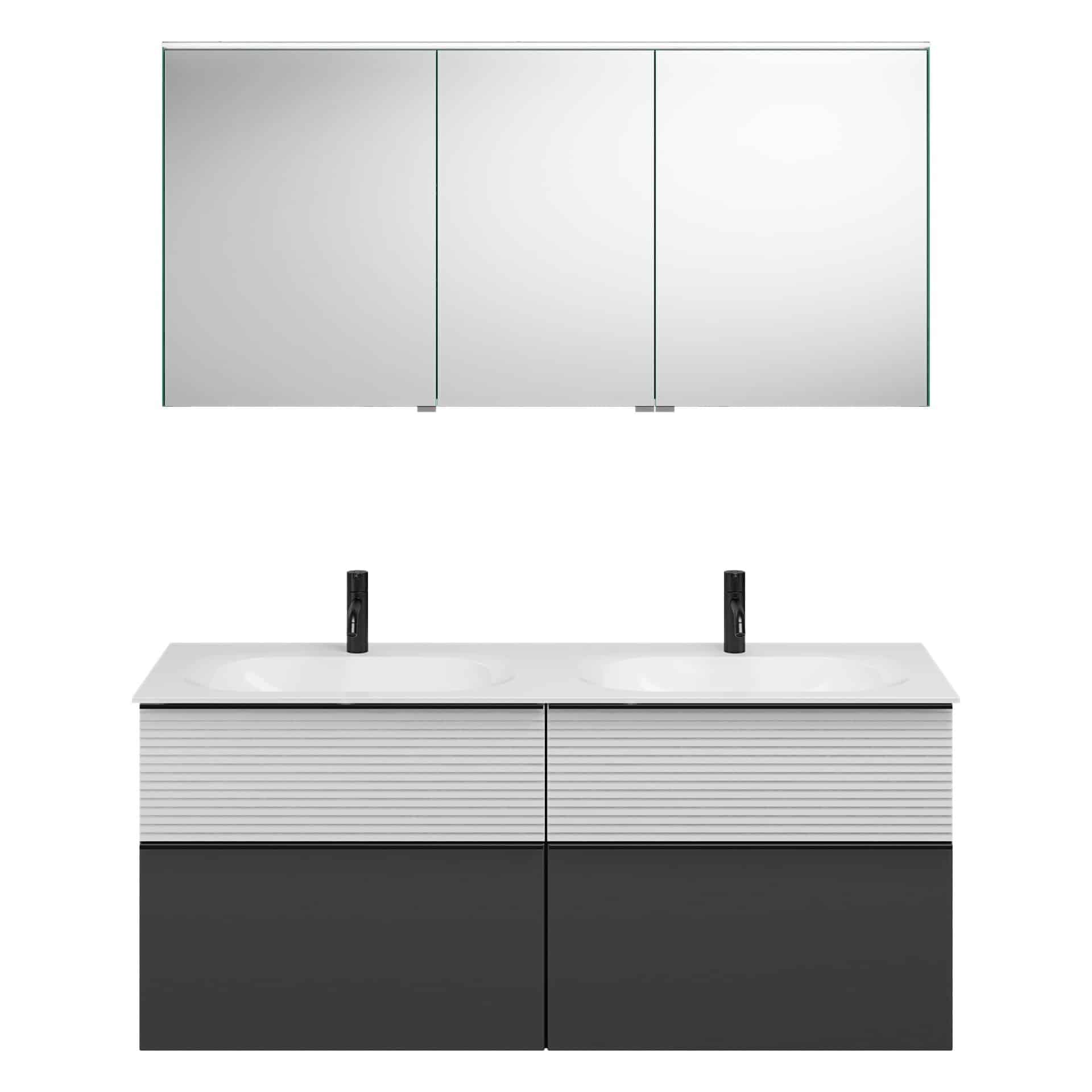 Burgbad FIUMO Waschtisch Set mit Spiegelschrank 142 cm breit, Weiß/Anthrazit, Doppelwaschbecken Gussmarmor Weiß, 4 Schubladen, Anschlag links