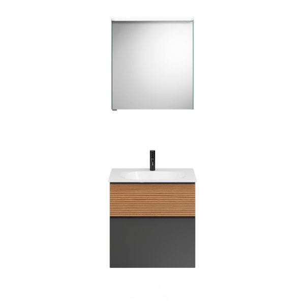 Burgbad FIUMO Waschtisch Set mit Spiegelschrank 62 cm – Braun/Anthrazit
