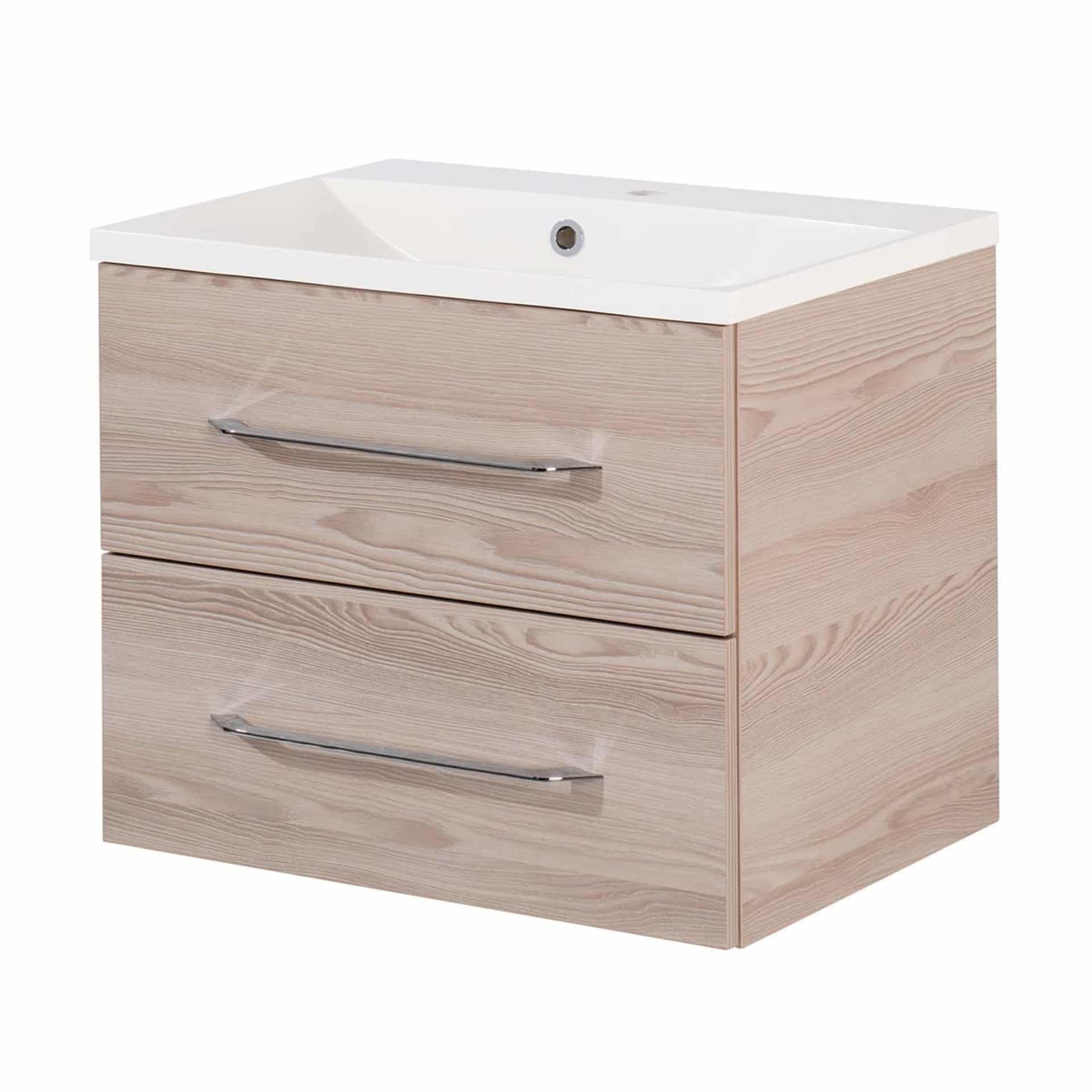 FACKELMANN B.CLEVER Waschbecken mit Unterschrank 60 cm breit, Braun hell, Waschbecken Gussmarmor Weiß