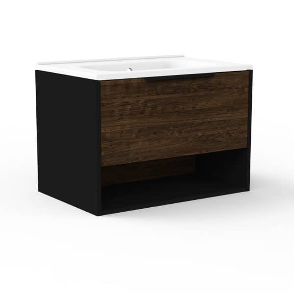 Fackelmann B.PARIS Badmöbel Set 2-teilig 70 cm – Braun dunkel/Schwarz, Gussmarmor