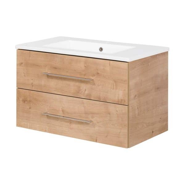 FACKELMANN B.PERFEKT Waschbecken mit Unterschrank 82 cm – Braun hell & Keramik Weiß
