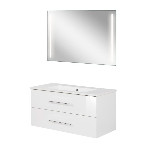 Produktbeschreibung: FACKELMANN B.PERFEKT Waschtisch Set mit Spiegel 103 cm breit, Weiß, Waschbecken Keramik Weiß