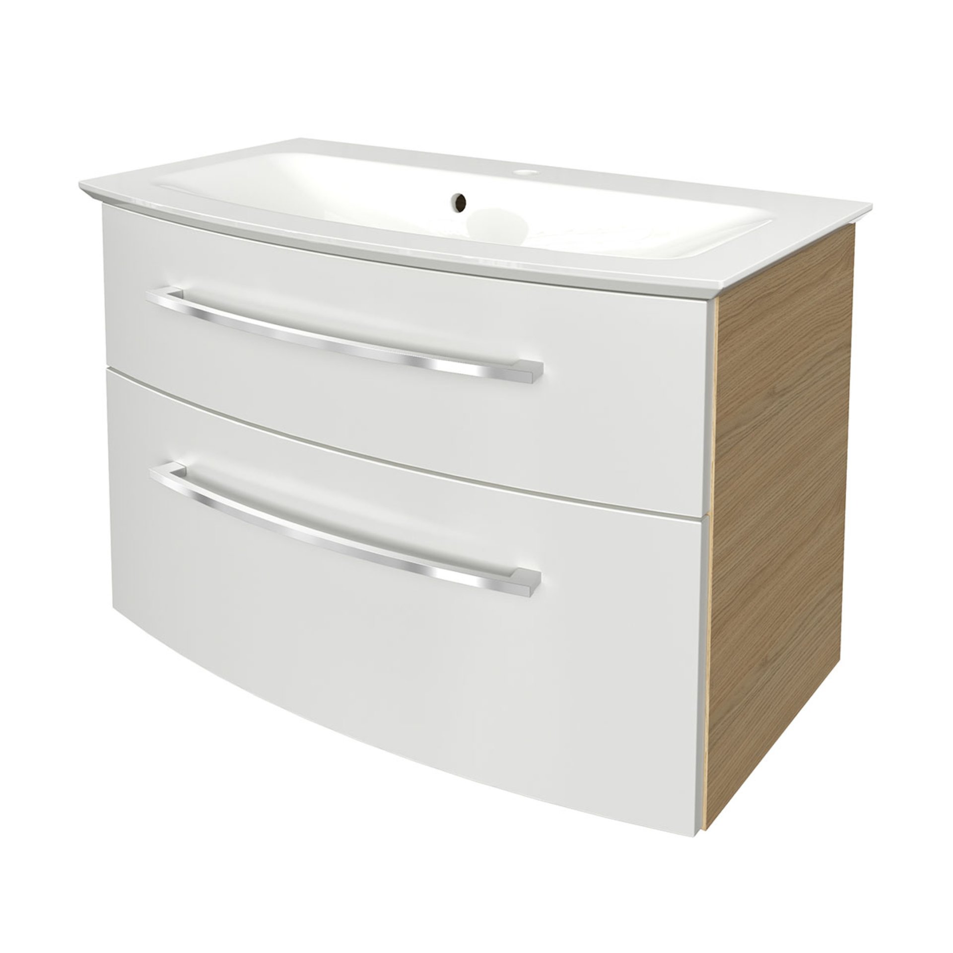 Fackelmann B.STYLE Badmöbel Set 2-teilig, 83,2 cm breit, Weiß/Braun, Gussmarmor Weiß