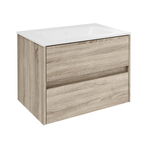 FACKELMANN COMPACT LINE Waschbecken mit Unterschrank – 71 cm breit, Braun & Keramik Weiß