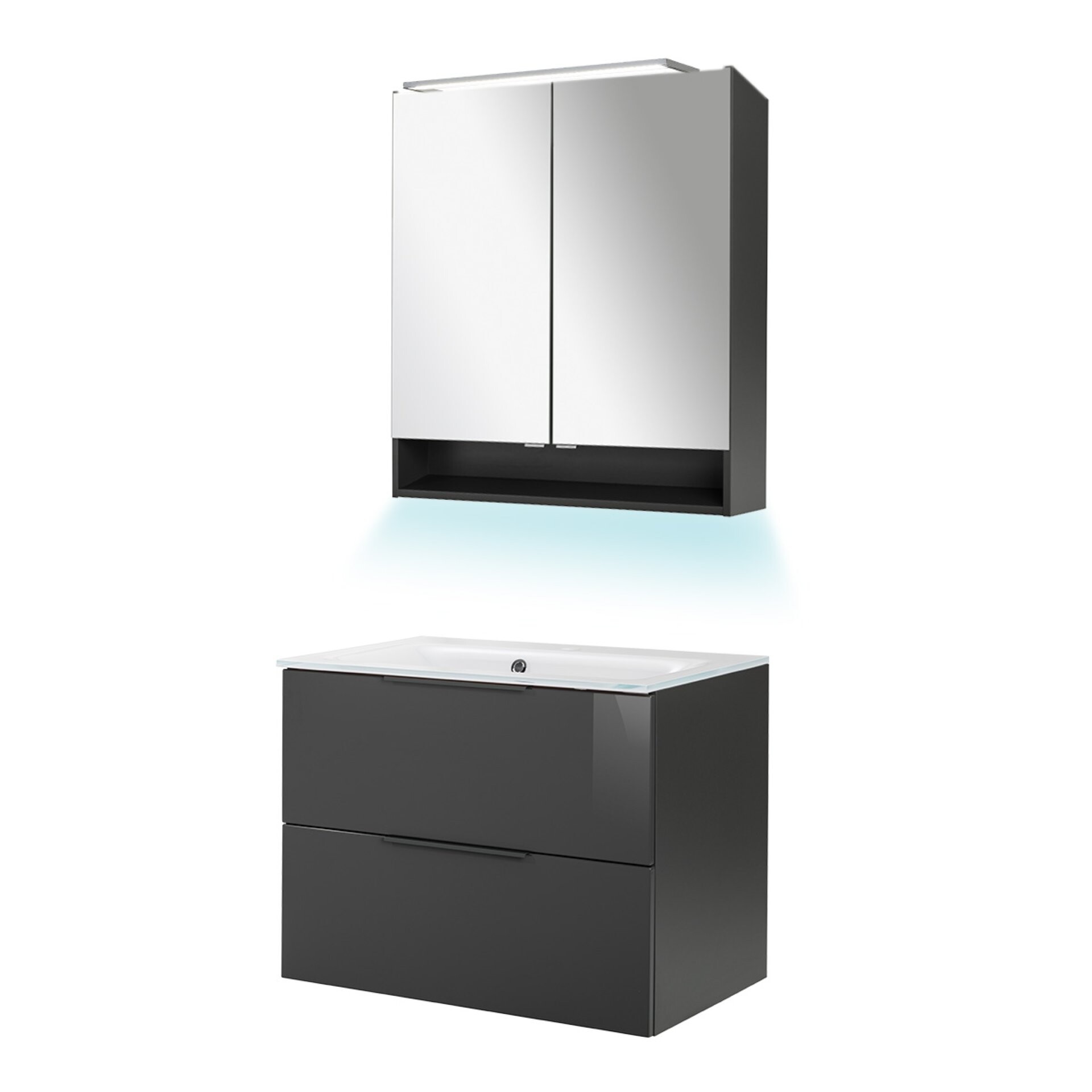 Fackelmann LUNA Badmöbel Set 4-teilig, 80 cm, Anthrazit / Glas Weiß + Spiegelschrank