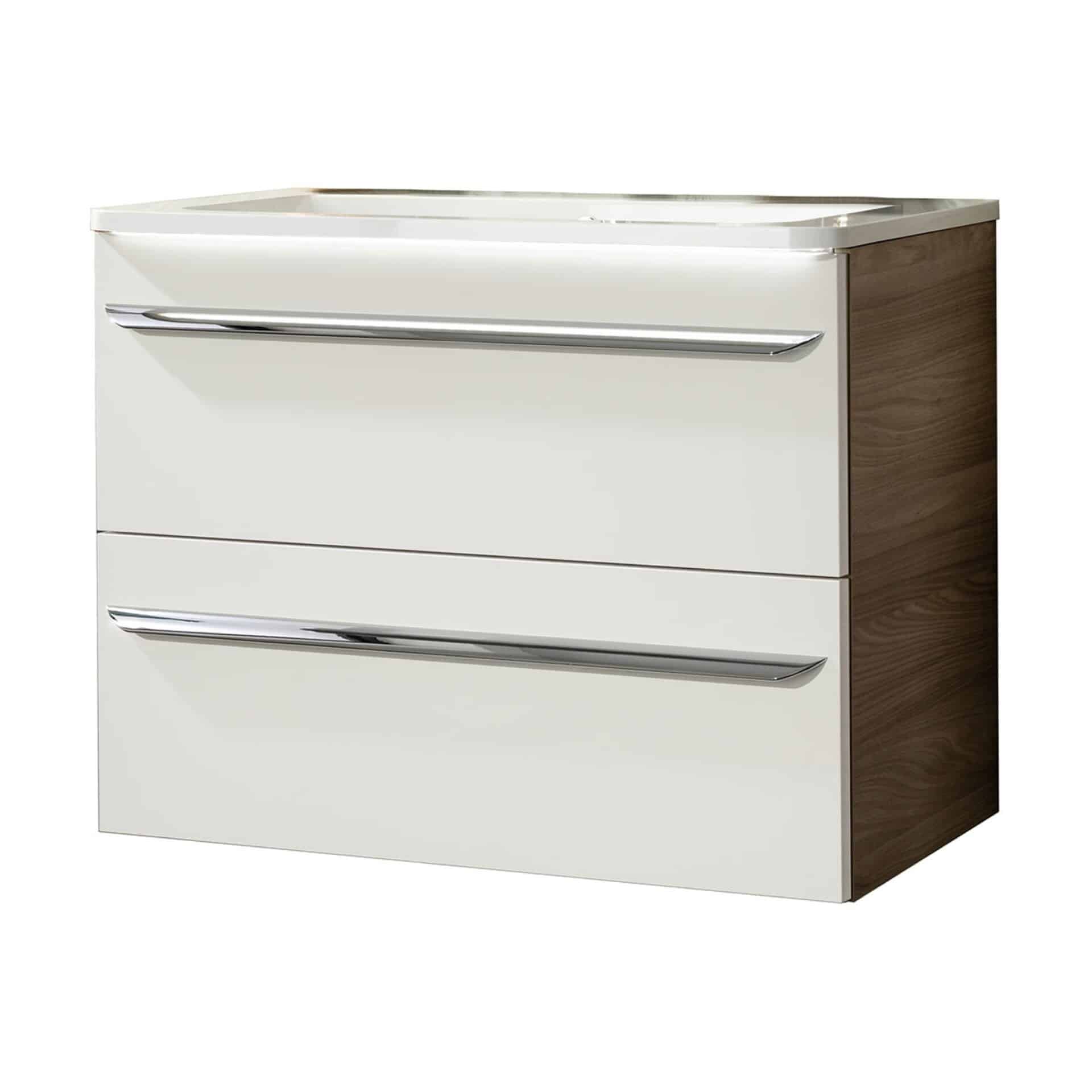 Fackelmann LUXOR Badmöbel Set 2-teilig 80 cm, Braun/Weiß, Gussmarmor