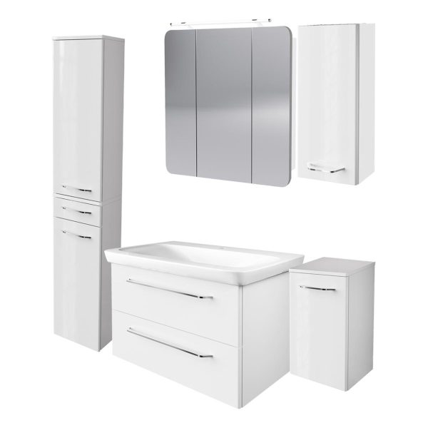 FACKELMANN MILANO Badmöbel Set 6-teilig, 88 cm breit, Weiß, Waschbecken Keramik, Spiegelschrank + 3 Badschränke