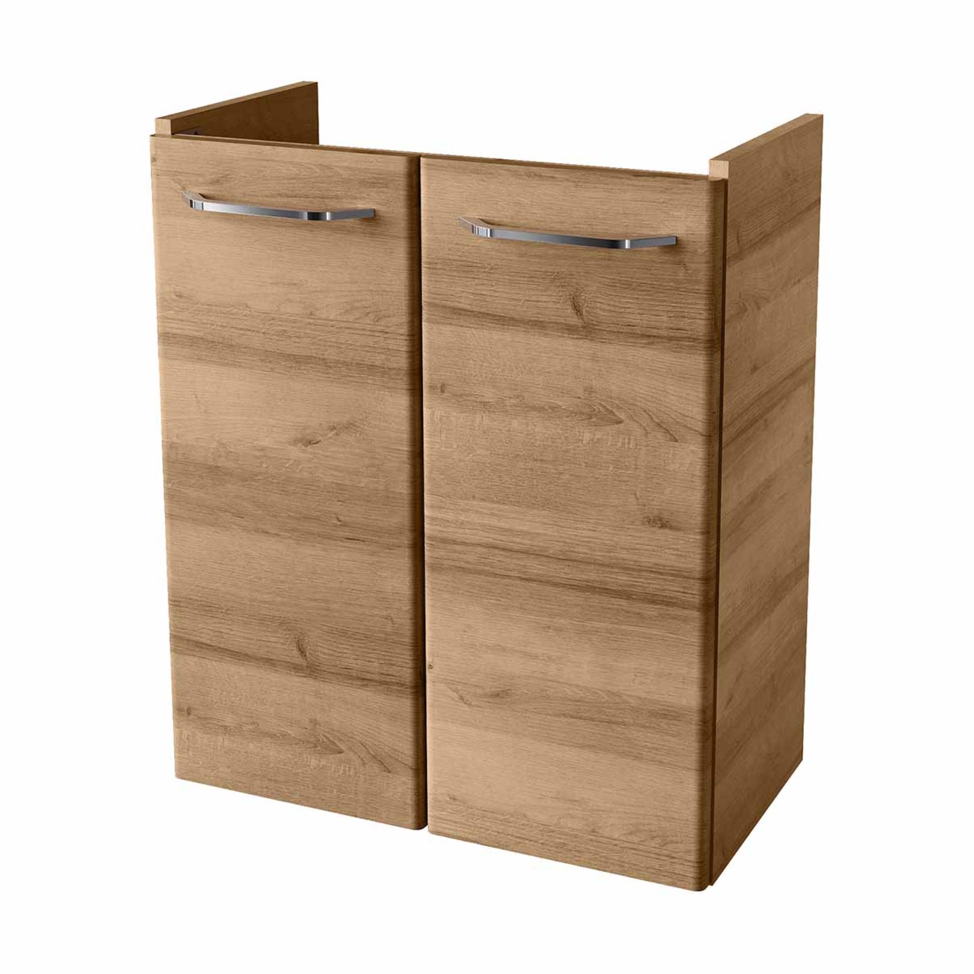 Obwohl die Oberfläche feuchtigkeitsresistent ist, empfiehlt sich der Einsatz des Unterschranks ausschließlich in gut belüfteten Badezimmern oder WCs. Dauerhafte Feuchtigkeit und Wasserspritzer sollten vermieden werden, um optimale Haltbarkeit zu gewährleisten. Für direkt wasserexponierte Bereiche wie Duschen oder Dampfbäder ist das Möbel nicht geeignet.