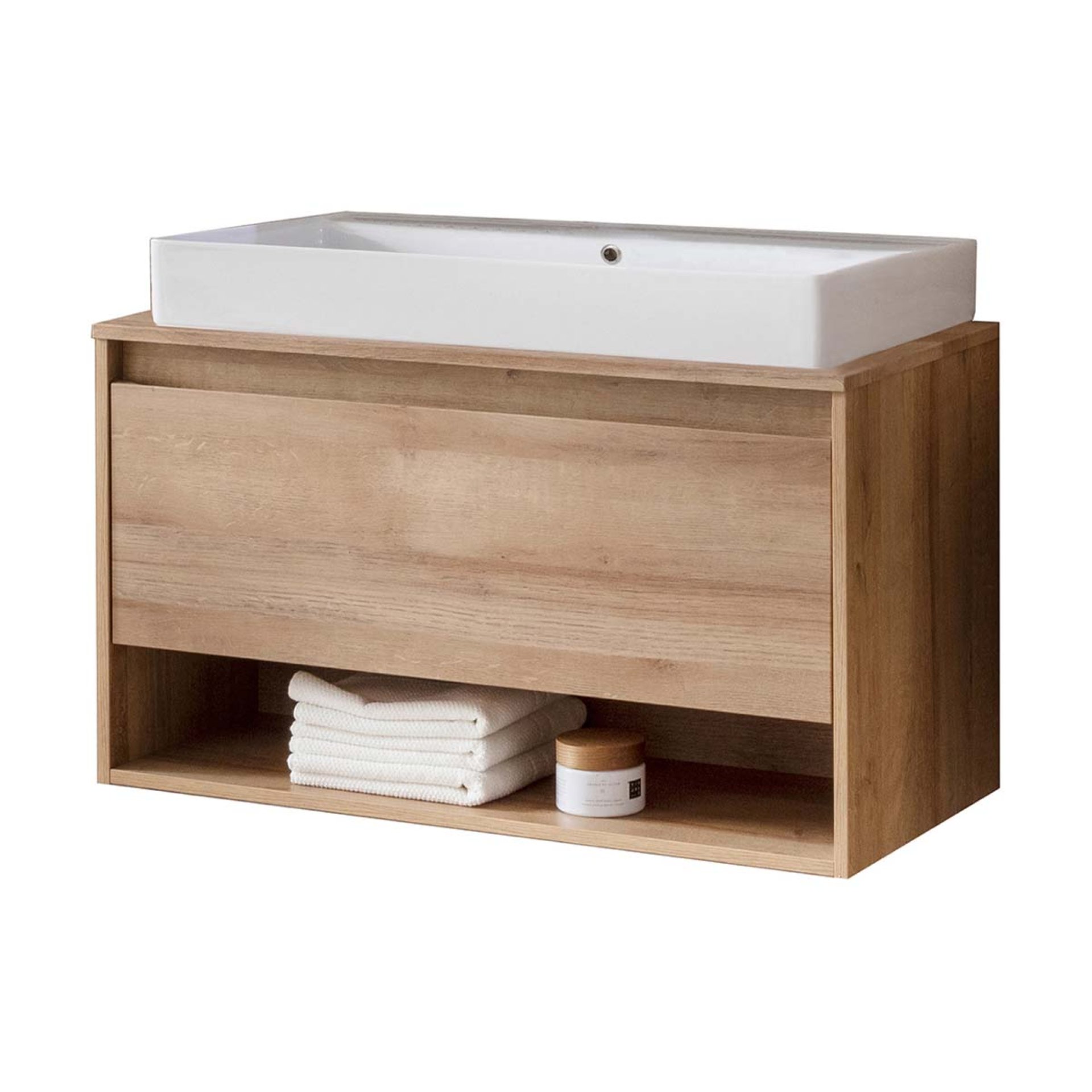Fackelmann NATURA Badmöbelset 2-teilig, Keramik, 94 cm breit, Braun hell