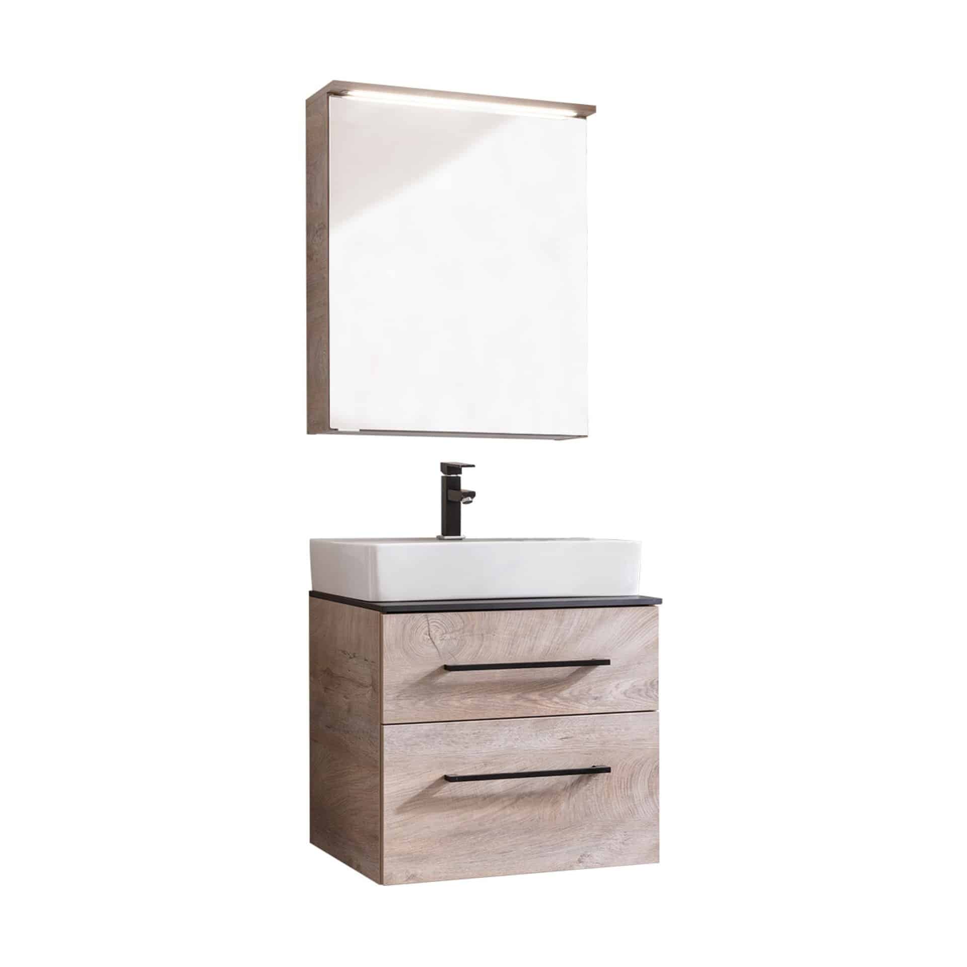 Fackelmann OXFORD Badmöbelset 4-teilig, 60 cm, Braun hell, Keramik breit