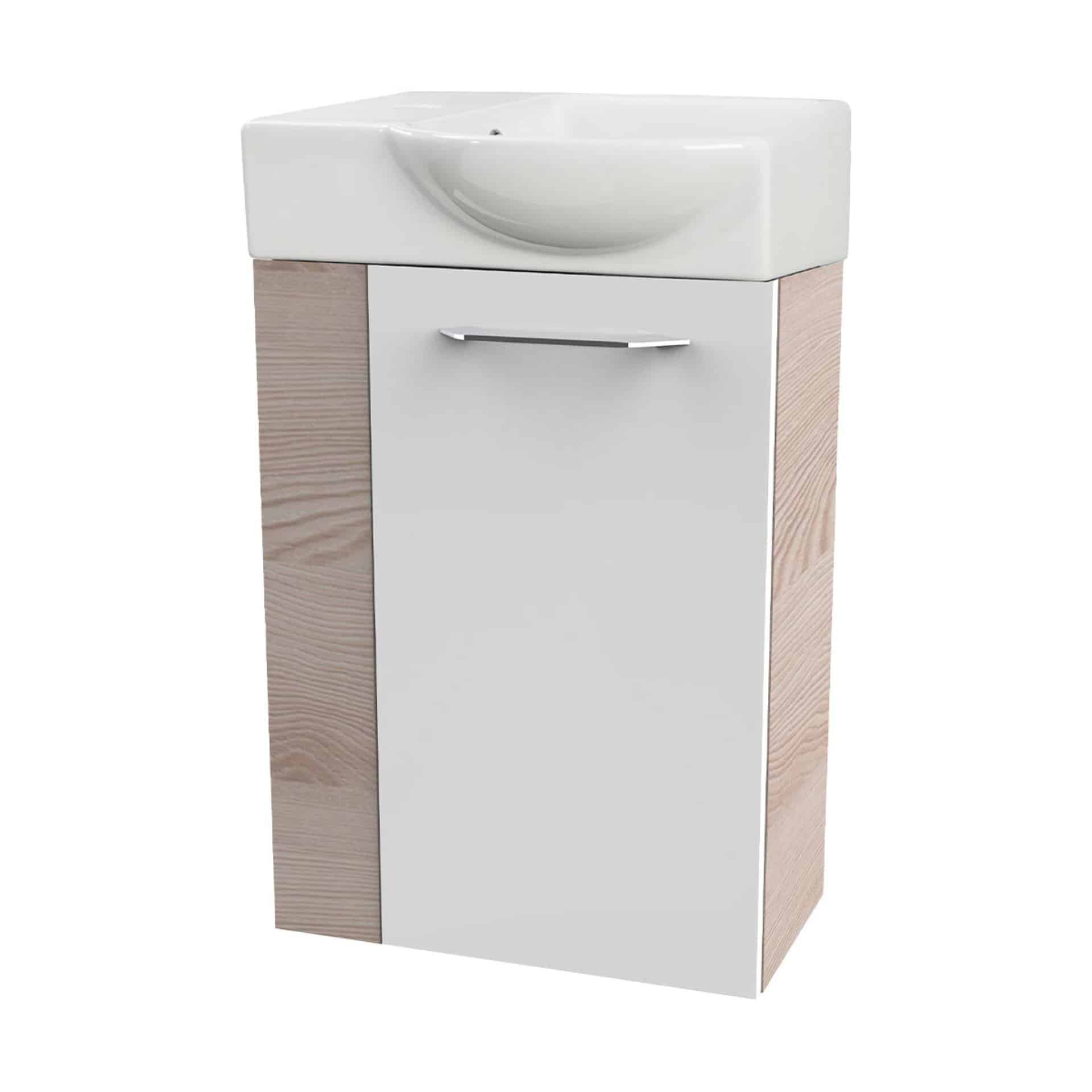 Fackelmann SBC B.CLEVER Gäste WC Set 2-teilig 45 cm, Braun hell/Weiß, rechts, Keramik Hahnloch links