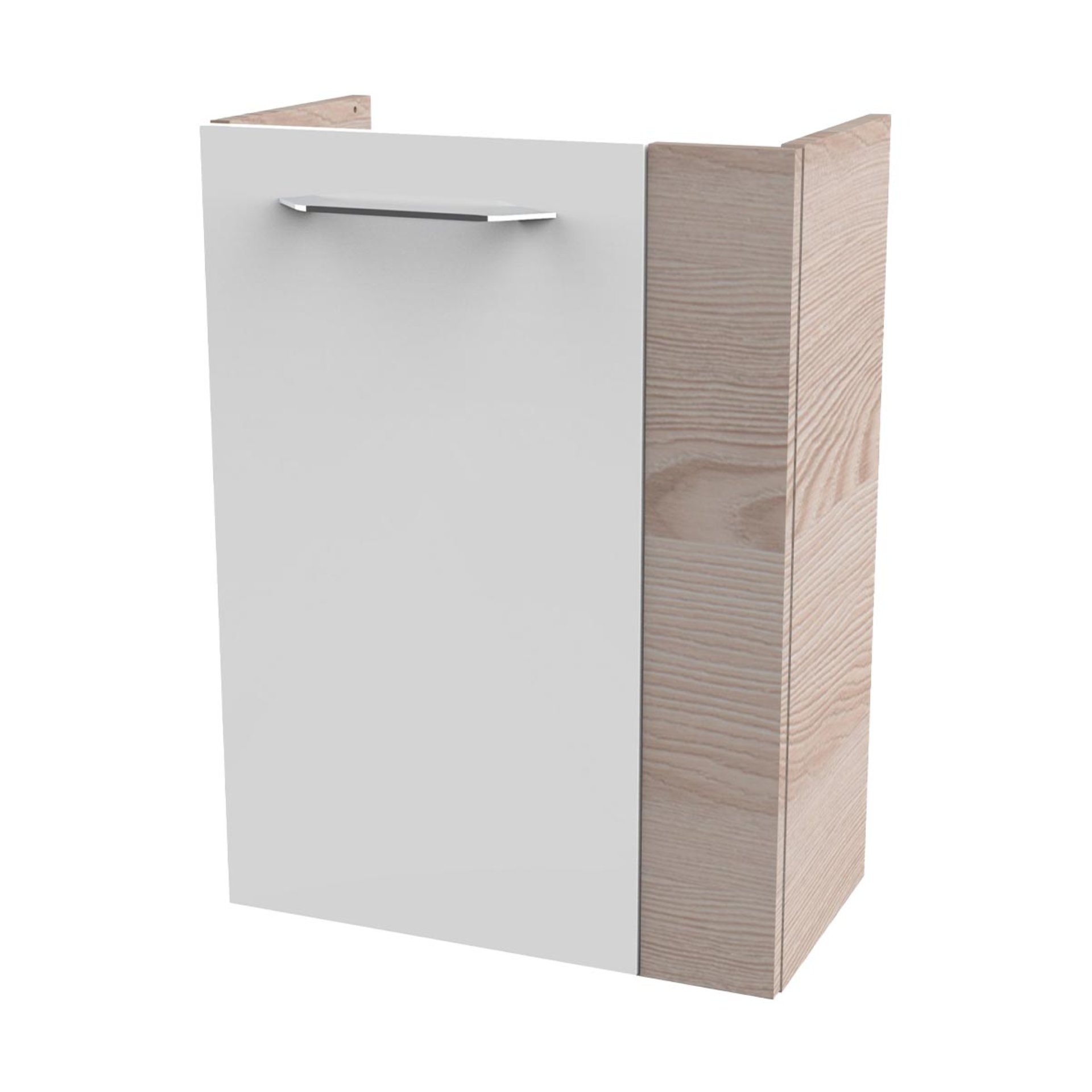 Durch die links angeschlagene Tür bietet das Möbelstück flexible Montagemöglichkeiten – ideal für kleine oder schmale Badezimmerbereiche. Die hochwertige Verarbeitung steht für langlebige Qualität und einfache Reinigung. Hinter der Tür befindet sich viel Stauraum, um Badutensilien, Reinigungsmittel oder Handtücher ordentlich und griffbereit zu verstauen.
