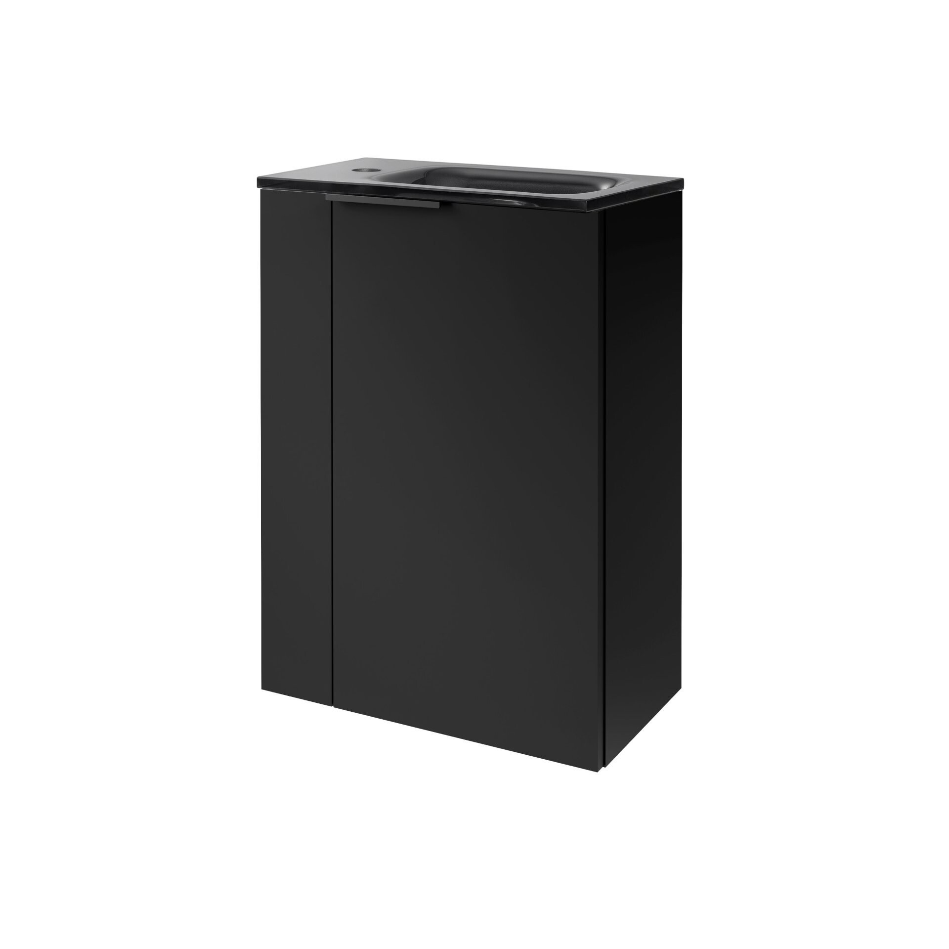 FACKELMANN SBC B.PARIS Gäste WC Waschtisch Set 45 cm breit, Schwarz matt, Waschbecken Glas Anthrazit, Türanschlag rechts