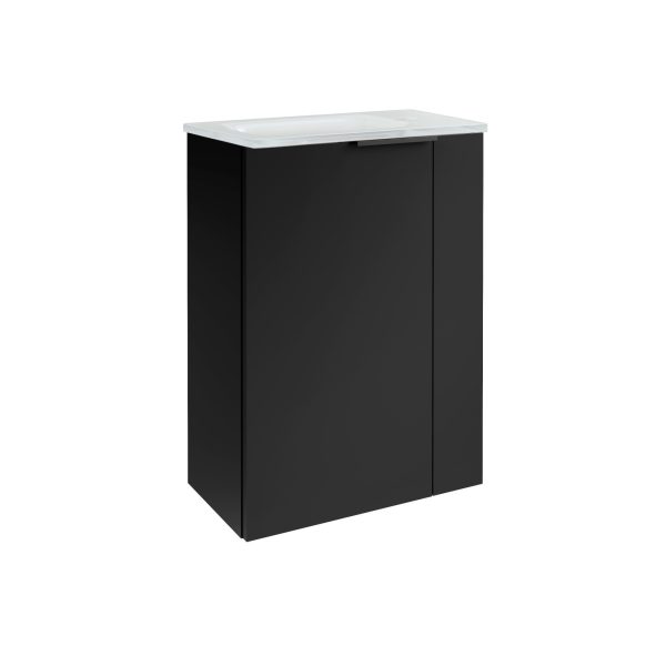 FACKELMANN SBC B.PARIS Gäste WC Waschtisch Set 45 cm breit, Schwarz matt, Waschbecken Glas Weiß, Türanschlag links