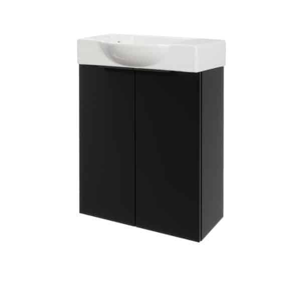 FACKELMANN SBC B.PARIS Gäste WC Waschtisch Set 55 cm breit, Schwarz matt, Waschbecken Keramik Weiß, Hahnloch links