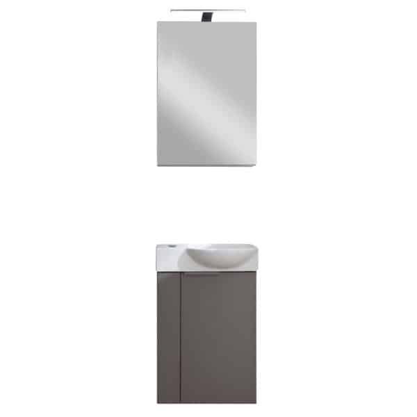 FACKELMANN SBC B.PARIS Gäste WC Waschtisch Set mit Spiegelschrank 45 cm – Grau, Türanschlag rechts