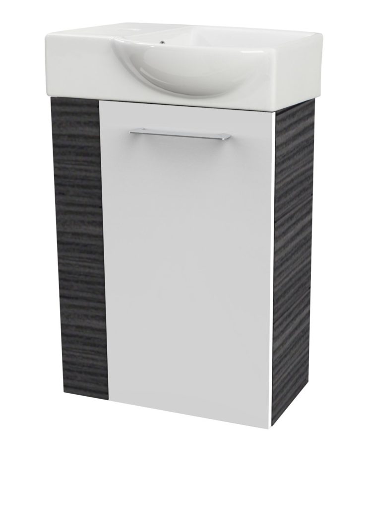 Fackelmann SBC B. PERFEKT Gäste WC Set 2-teilig 45 cm, Anthrazit Holzoptik/Weiß, rechts, Keramik