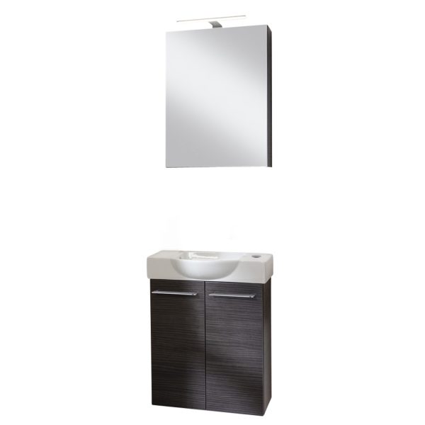 FACKELMANN SBC B.PERFEKT Gäste WC Waschtisch Set mit Spiegelschrank, 55 cm breit, Anthrazit, Türanschlag rechts