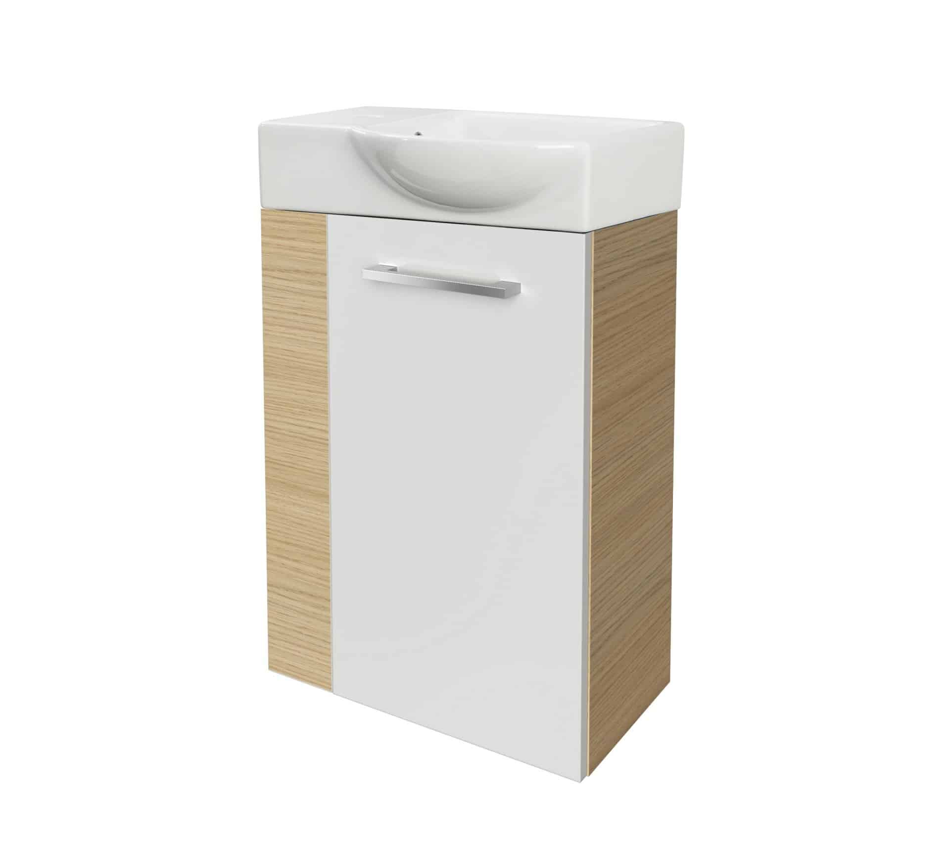 Mit seiner Breite von nur 45 cm eignet sich das Set vor allem für kleine Gäste-WCs oder beengte Sanitärbereiche, in denen kompaktes Mobiliar gefragt ist. Es passt ausgezeichnet in moderne Apartments, Gästezimmer oder Büro-WCs, wo Platzersparnis und Funktionalität gefragt sind, ohne dabei auf Stil zu verzichten.