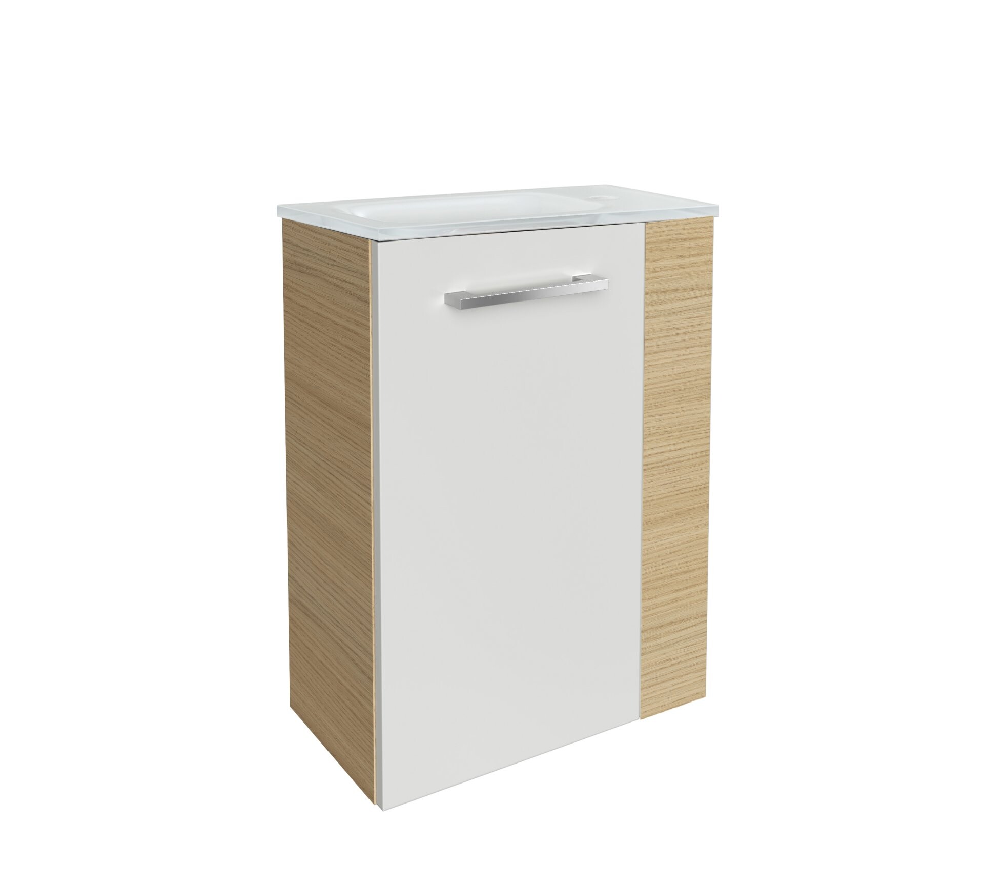 FACKELMANN SBC B. STYLE Gäste WC Waschtisch Set 45 cm breit, Braun/Weiß, Waschbecken Glas Weiß, Türanschlag links