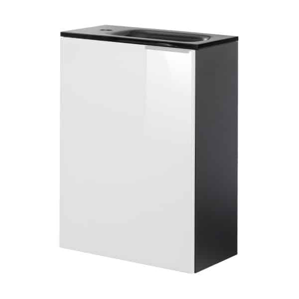 FACKELMANN SBC KARA Gäste WC Waschtisch Set 45 cm breit, Weiß/Anthrazit, Waschbecken Glas Anthrazit, Türanschlag links