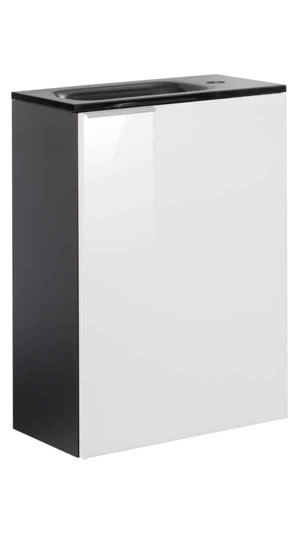 FACKELMANN SBC KARA Gäste WC Waschtisch Set 45 cm breit, Weiß/Anthrazit, Waschbecken Glas Anthrazit, Türaschlag rechts