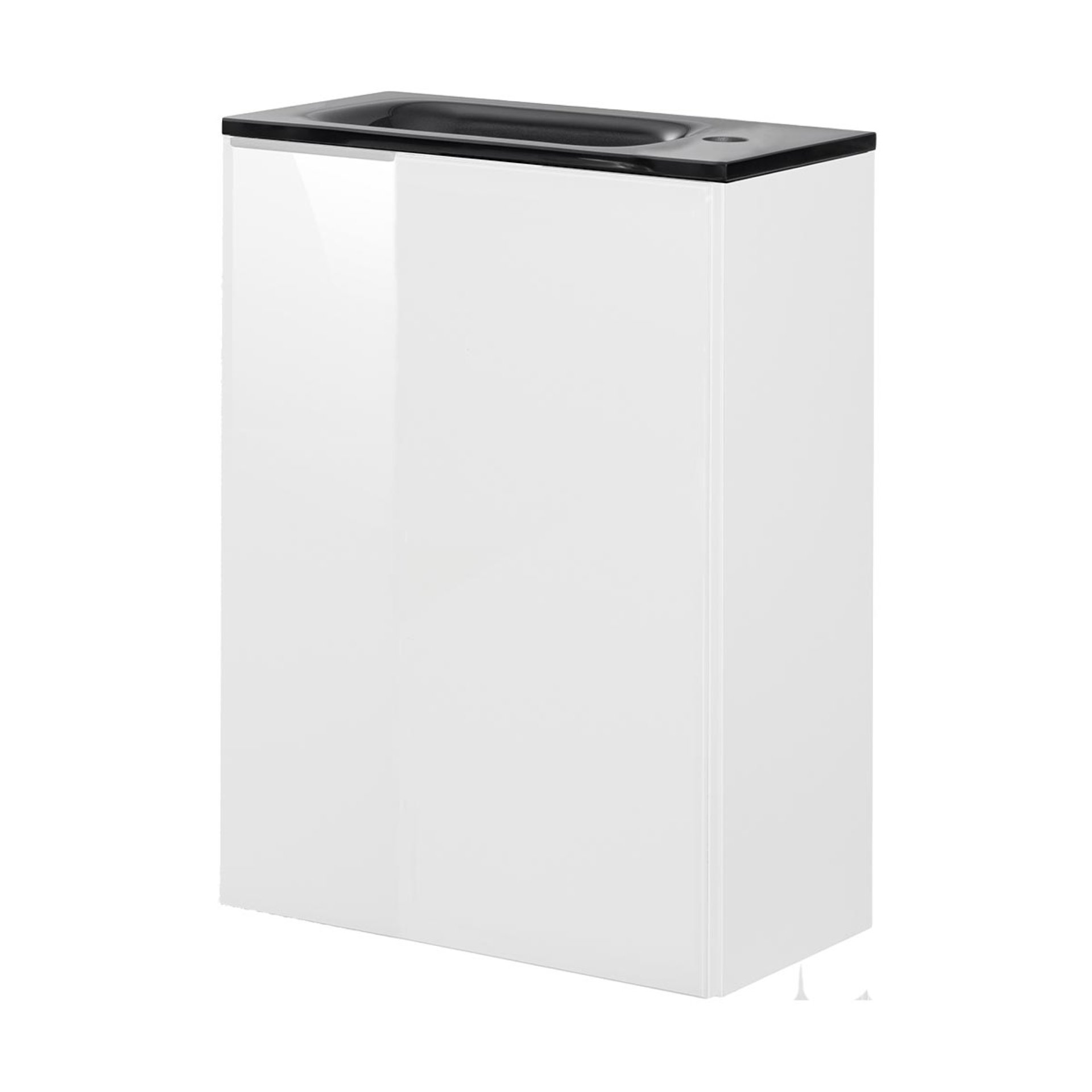 FACKELMANN SBC KARA Gäste WC Waschtisch Set 45 cm breit, Weiß, Waschbecken Glas Anthrazit, Türanschlag rechts