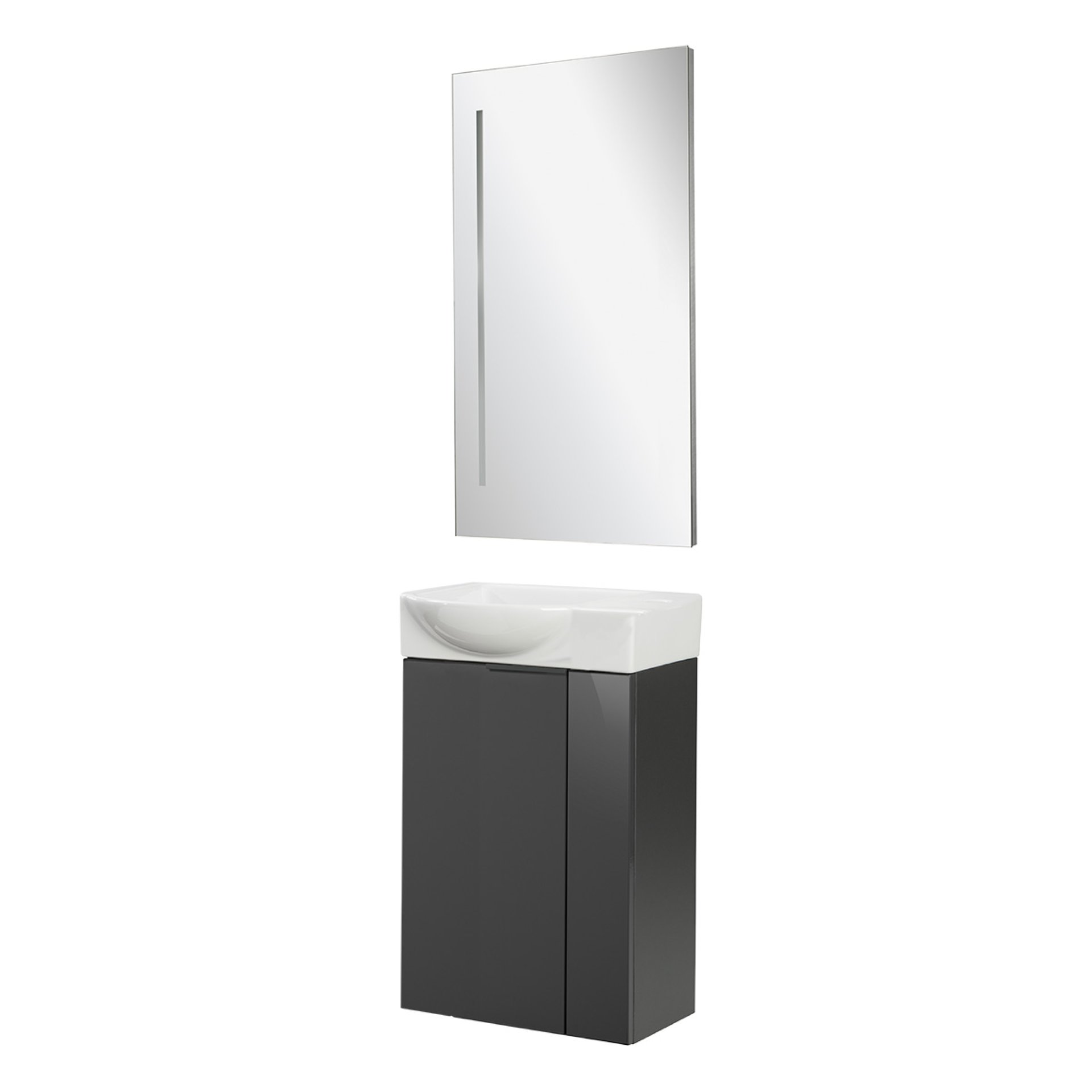 Fackelmann SBC LUNA Gäste WC Set 3-teilig 45 cm, Anthrazit, Keramik rechts + LED Spiegel