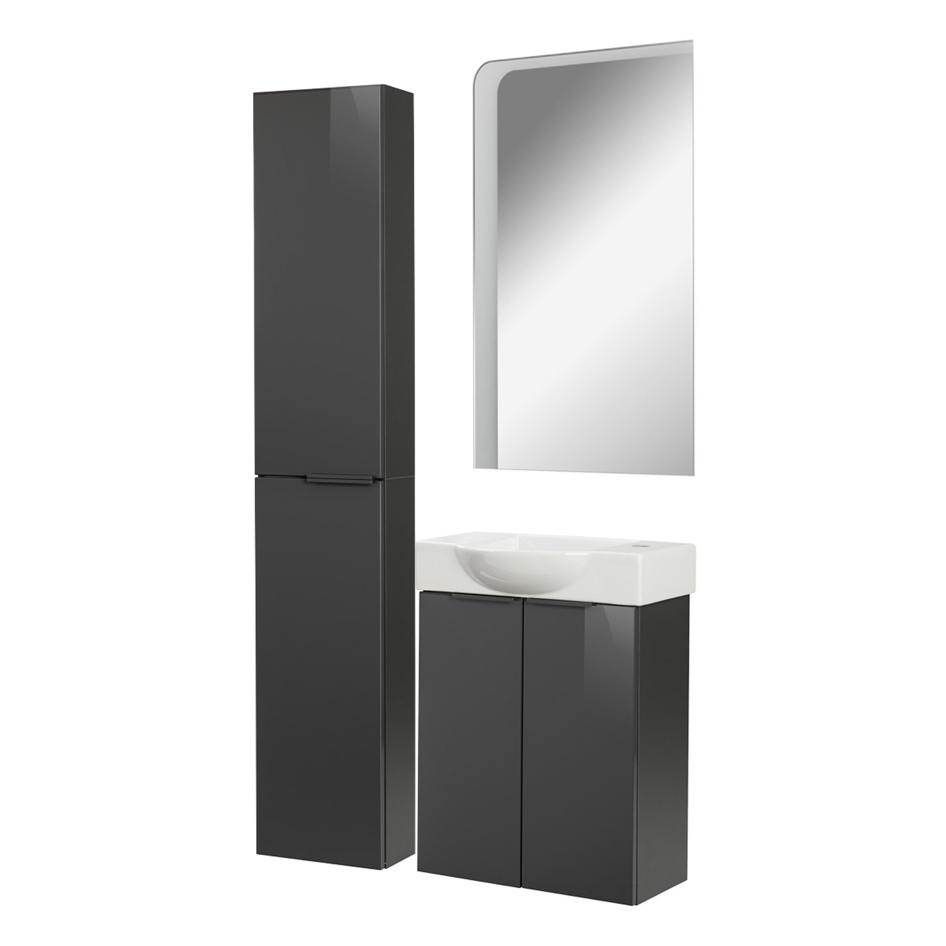 Fackelmann SBC LUNA Gäste WC Set 4-teilig 55 cm, Anthrazit, Keramik rechts+Spiegel+Hochschrank slim