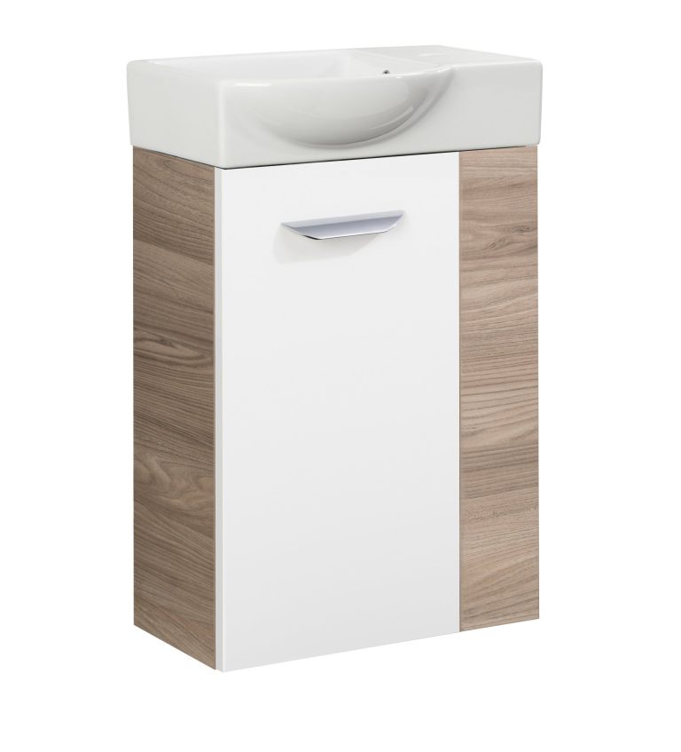Fackelmann SBC LUXOR Gäste WC Set 2-teilig 45 cm – Braun hell/Weiß, links, Keramik Hahnloch rechts