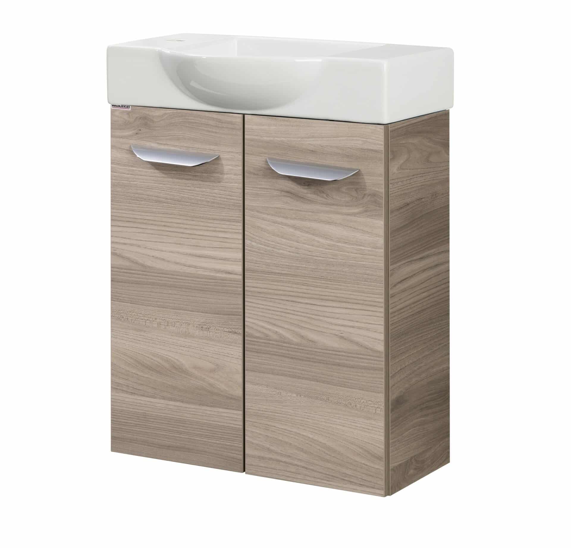 Fackelmann SBC LUXOR Gäste WC Set 2-teilig 55 cm, Braun hell, 2 Türen, Keramik Hahnloch links