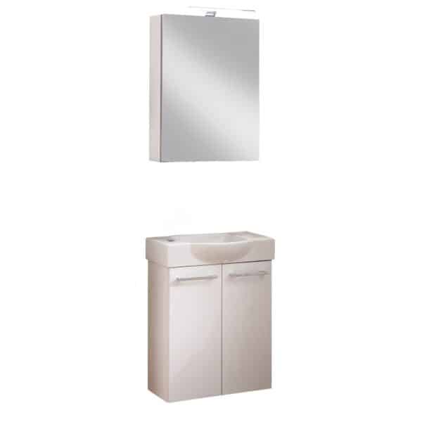 Produktbeschreibung: FACKELMANN SBC SCENO Gäste WC Waschtisch Set mit Spiegelschrank 55 cm, Weiß, Türanschlag links