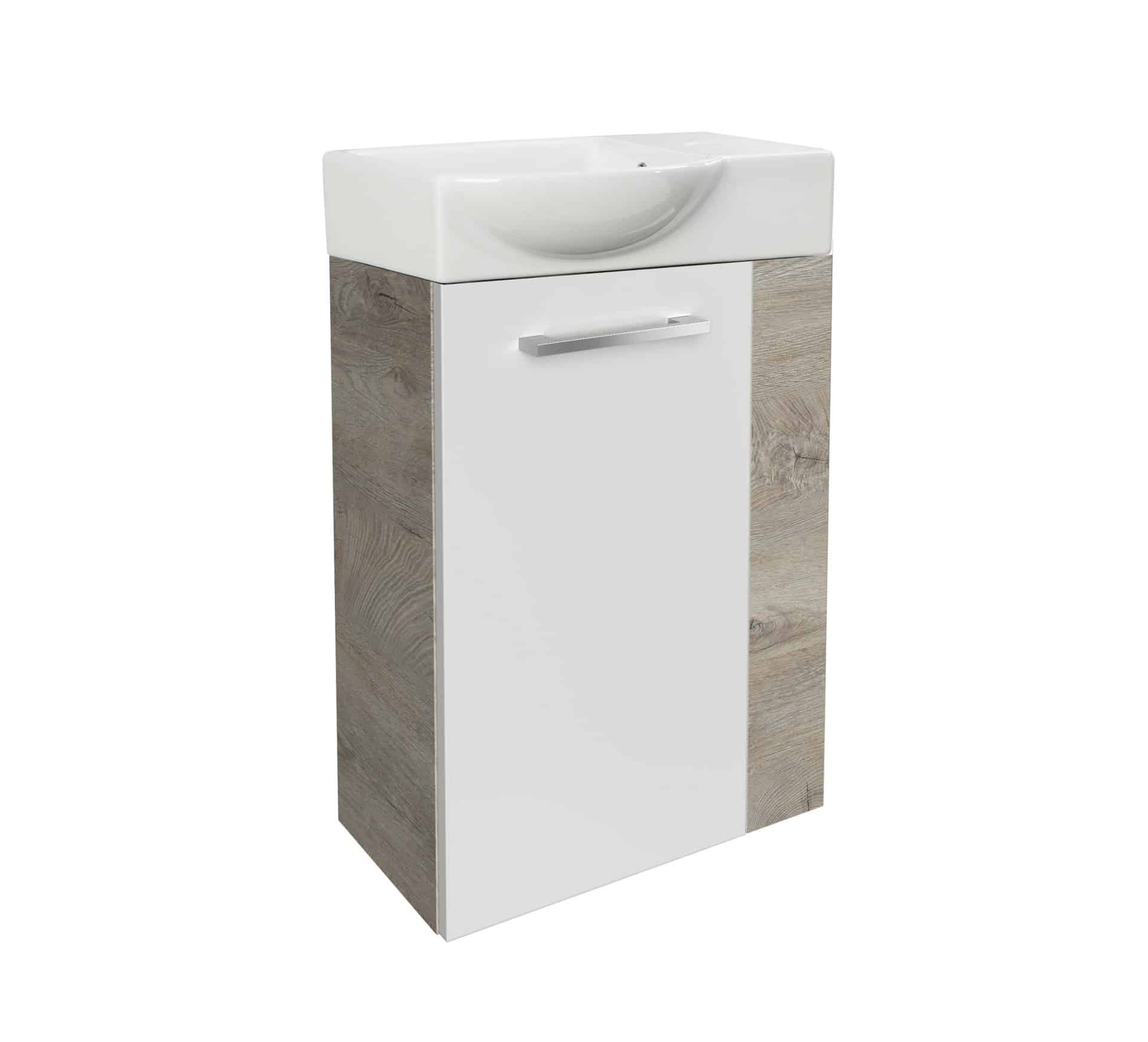 Fackelmann SBC STANFORD Gäste WC Set 2-teilig 45 cm, Braun hell/Weiß, links, Keramik Hahnloch rechts