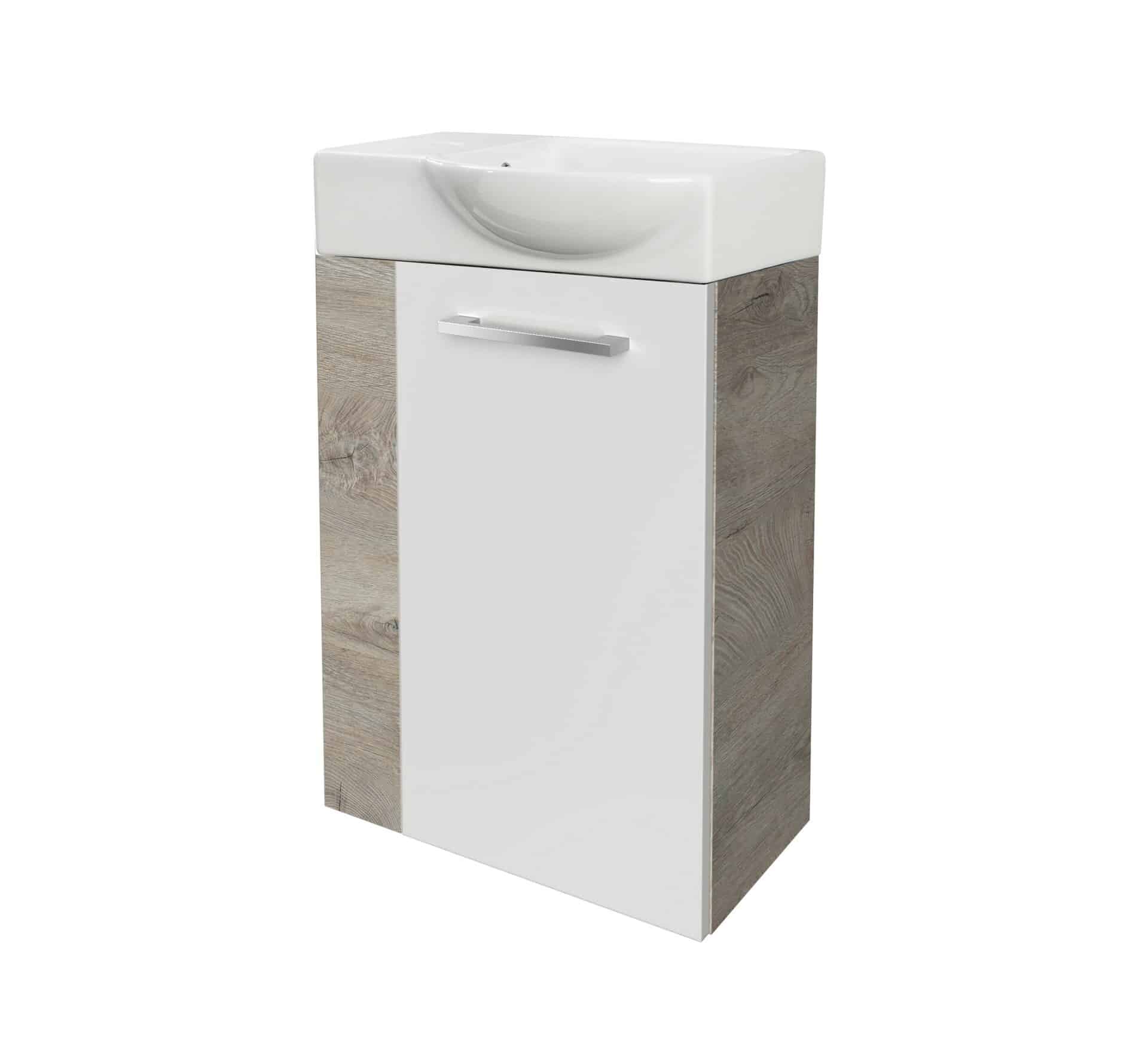 Fackelmann SBC STANFORD Gäste WC Set 2-teilig 45 cm, Braun hell/Weiß, rechts, Keramik Hahnloch links