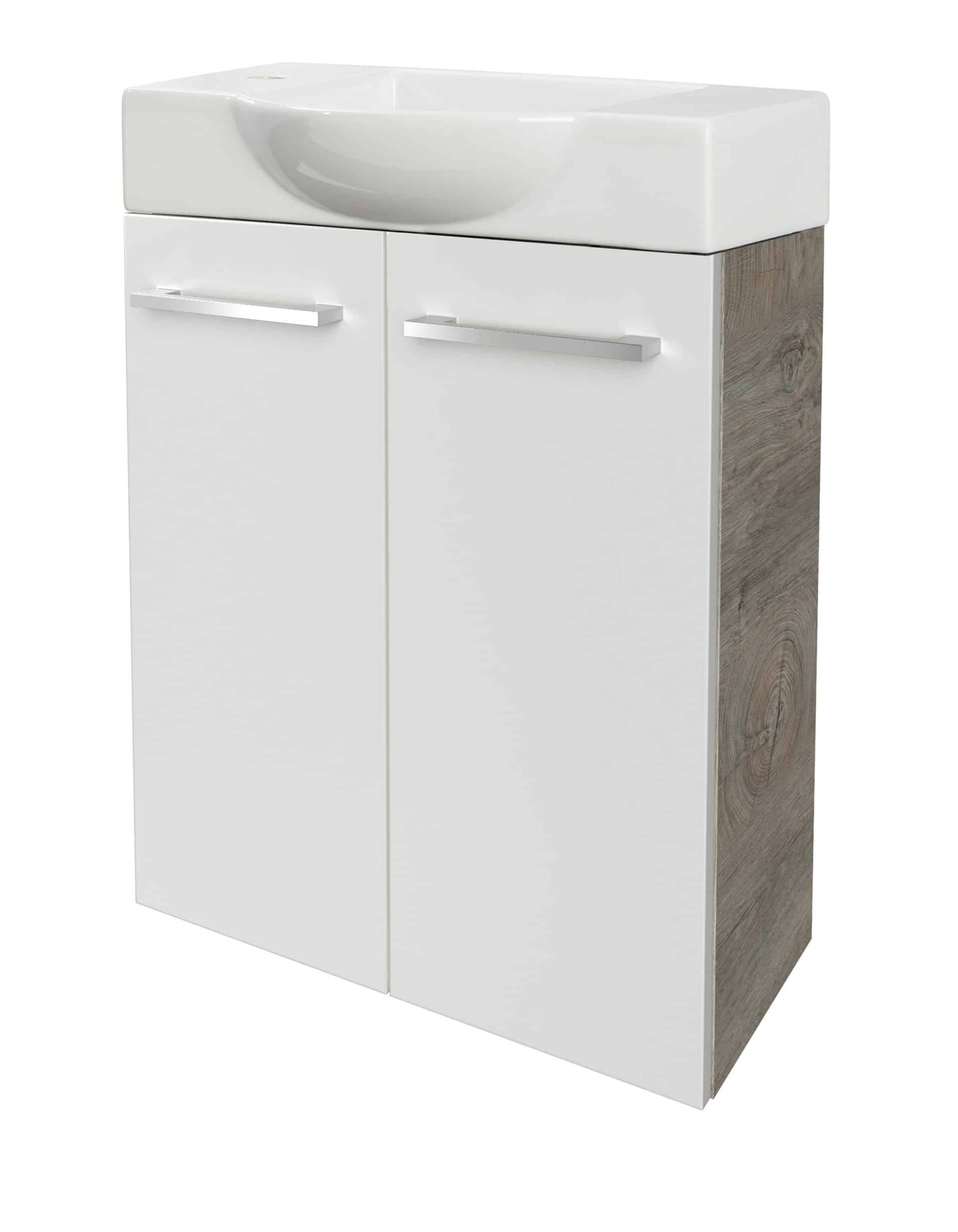 Fackelmann SBC STANFORD Gäste WC Set 2-teilig 55cm, Braun hell/Weiß, Keramik Hahnloch links
