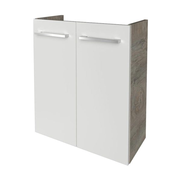 FACKELMANN SBC STANFORD Waschbeckenunterschrank Gäste WC 55 cm breit, Weiß/Braun hell, 2 Türen