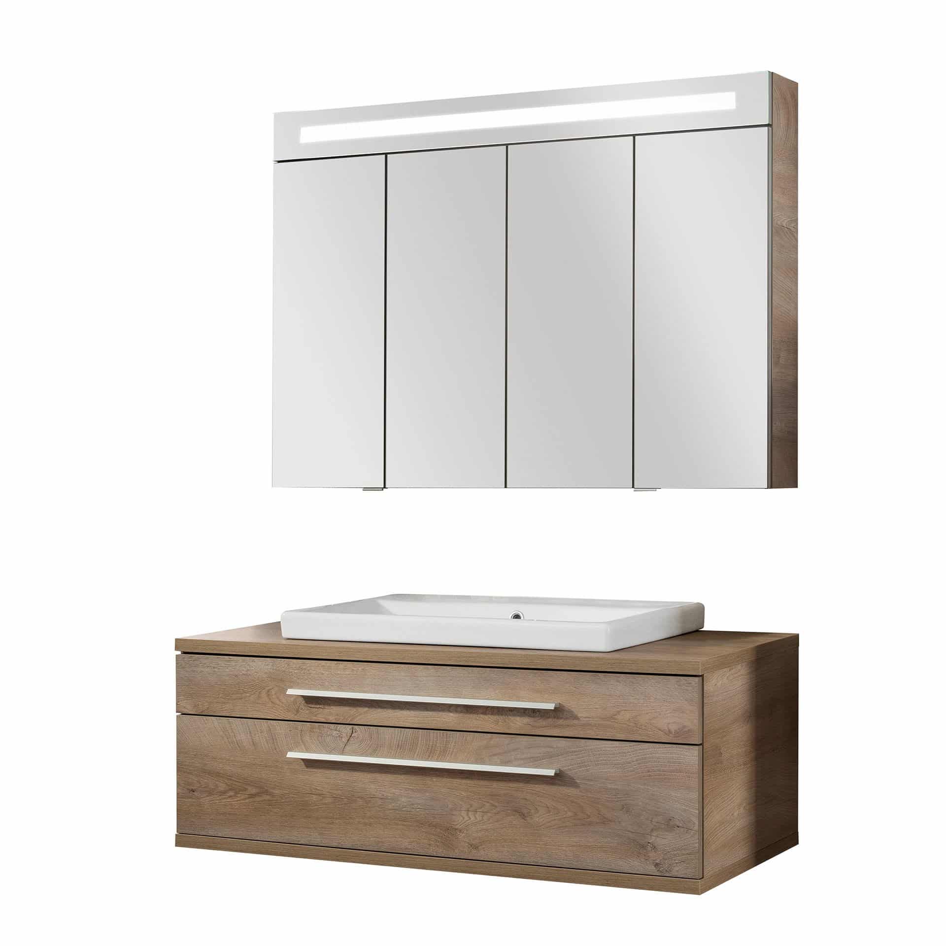 Fackelmann STANFORD Badmöbel Set 3-teilig,110 cm breit, Braun, Keramik + Spiegelschrank