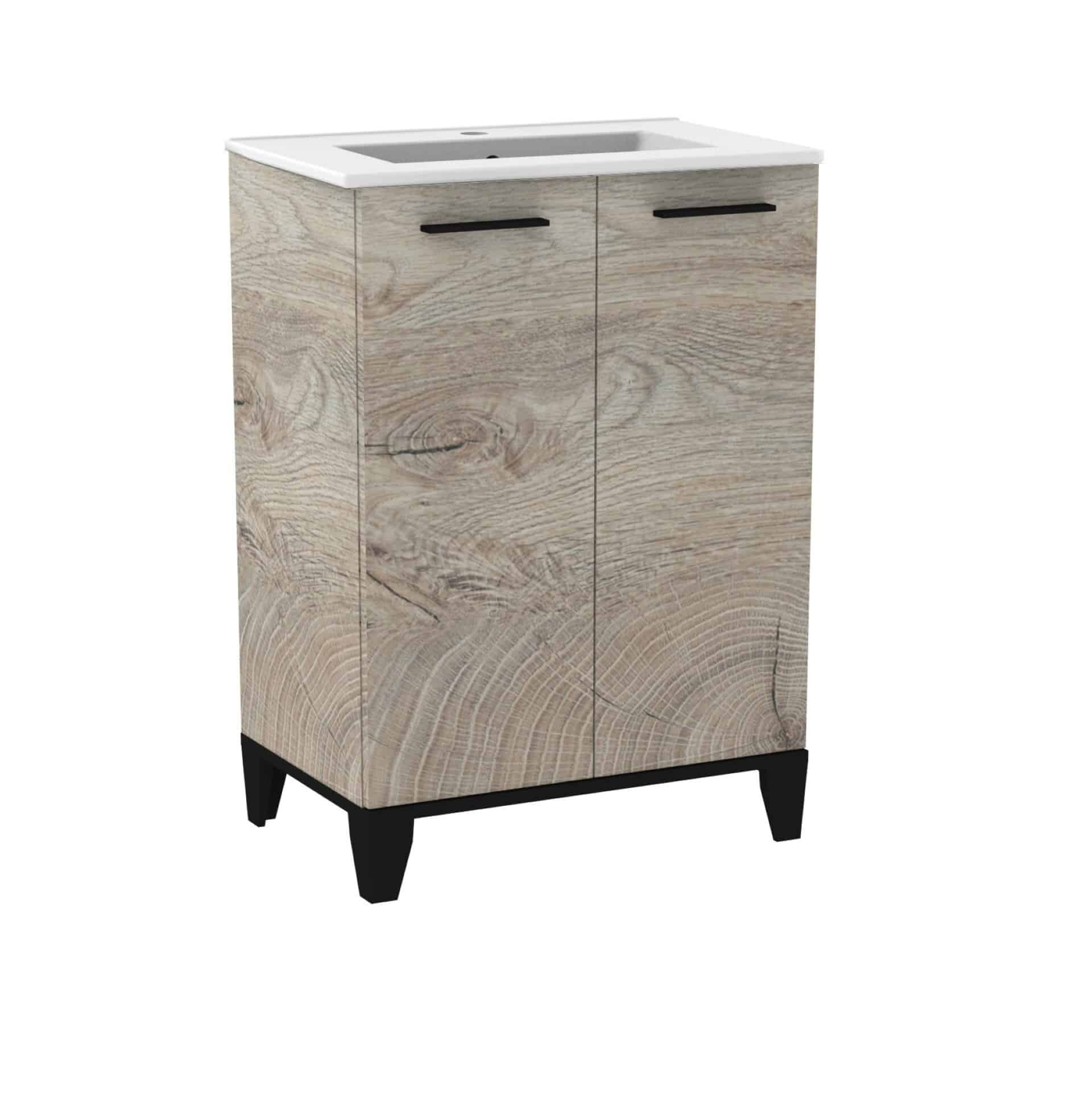 Fackelmann TE-A Badmöbelset 2-teilig 60 cm breit mit Füßen, Braun hell, Keramik