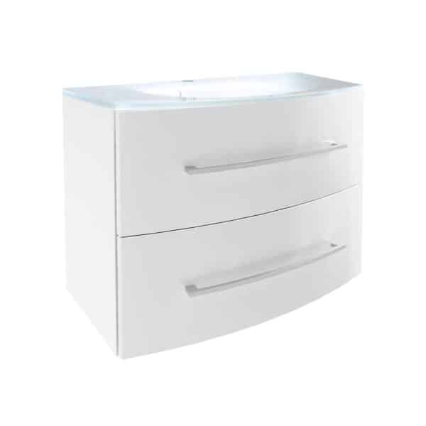 Fackelmann VERONA Badmöbel Set 2-teilig 80 cm breit, Weiß Hochglanz, Glas