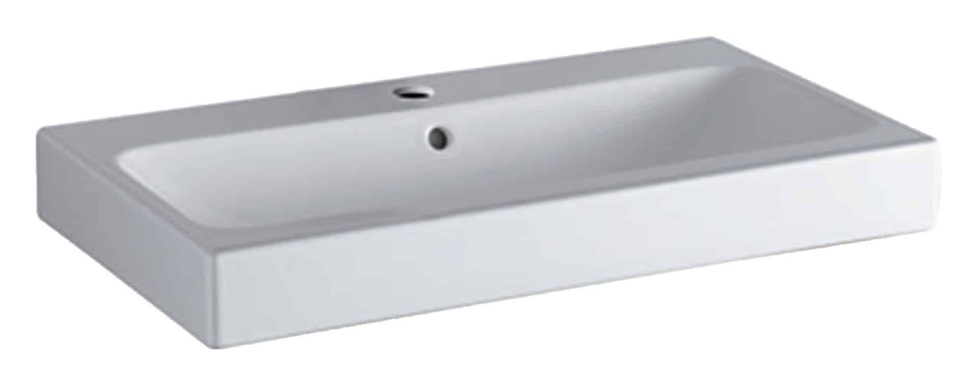GEBERIT ICON Waschbecken Keramik 75 cm breit – Weiß, mit Hahnloch, mit Überlauf, KeraTect