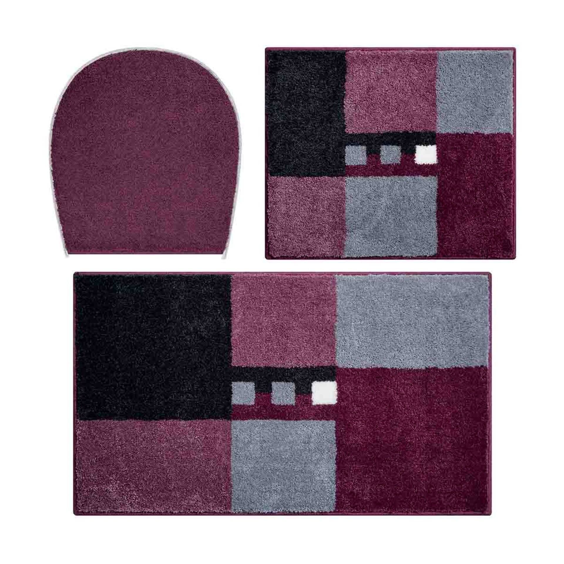 GRUND MERKUR Badematten 3er-Set 40 x 50 cm & 50 x 80 cm inkl. WC-Deckelbezug, Beere