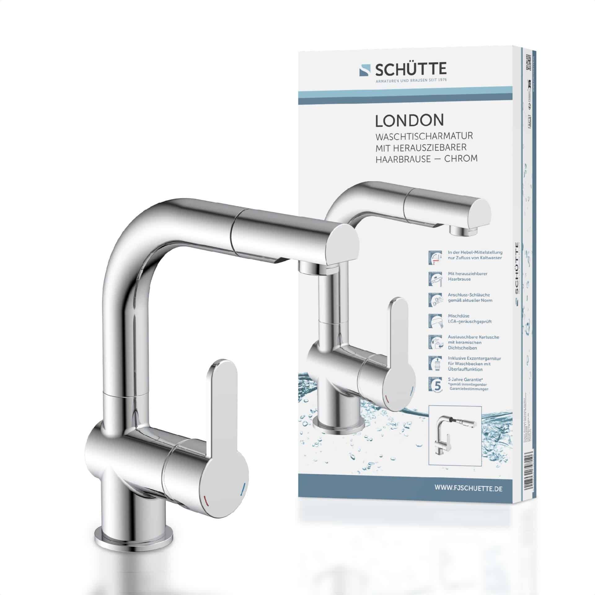 Schütte LONDON Waschtischarmatur, Chrom, mit herausziehbarer Brause – Produktbeschreibung