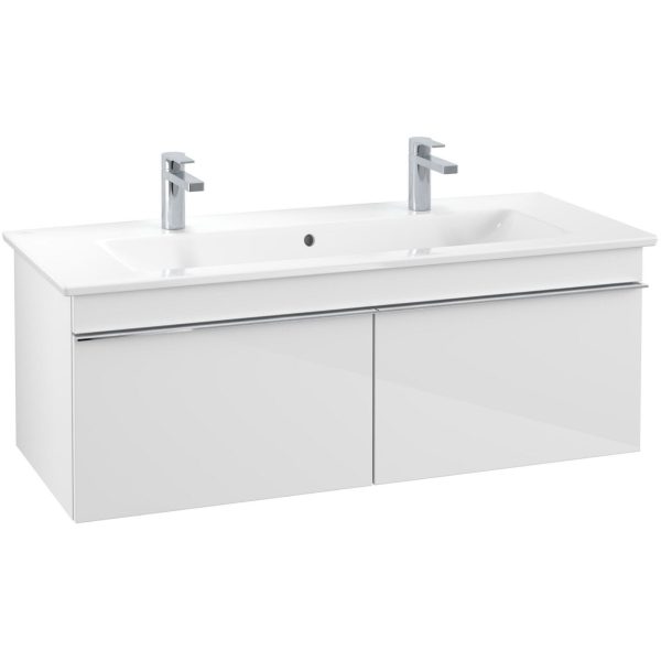 VILLEROY & BOCH VENTICELLO Waschbeckenunterschrank 115 cm breit, Weiß, Griff Chrom, 2 Schubladen, 2 Hahnlöcher